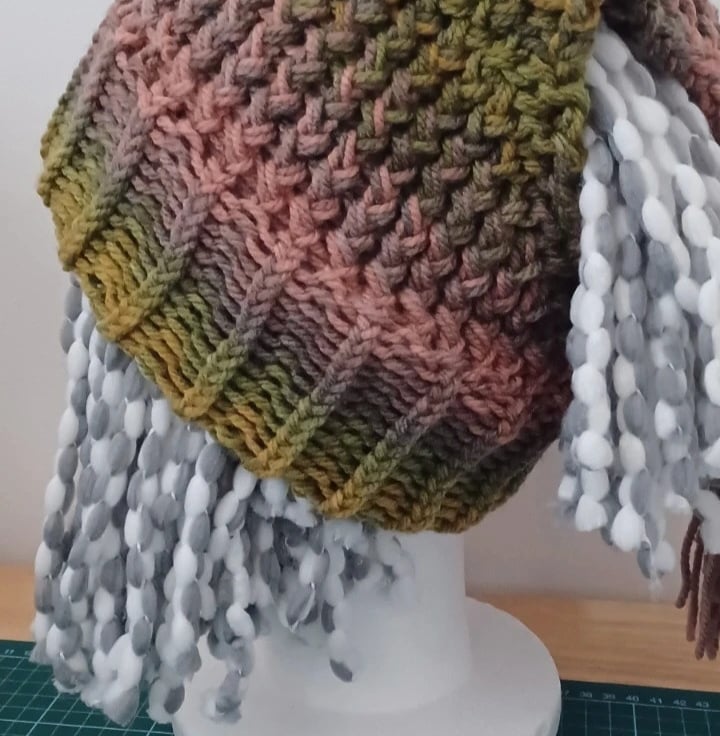 Super cool earthy toned knitted hat, great for those with dreadlocks or think hair to keep head warm !