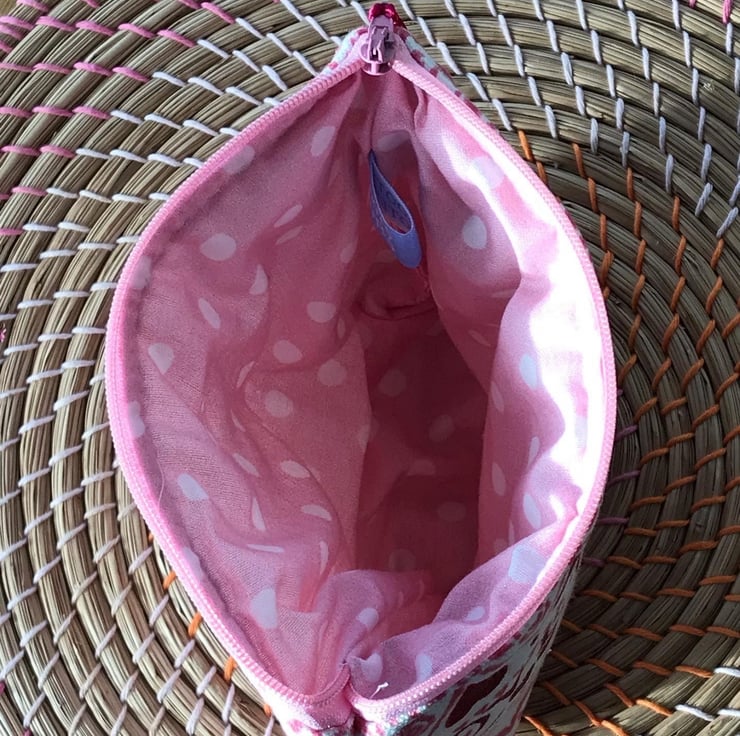 Zip top purse made in Emma Bridgewater Pink Sampler fabric.