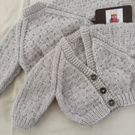 Handknitted in a Cream Yarn with hints of Pink and Green