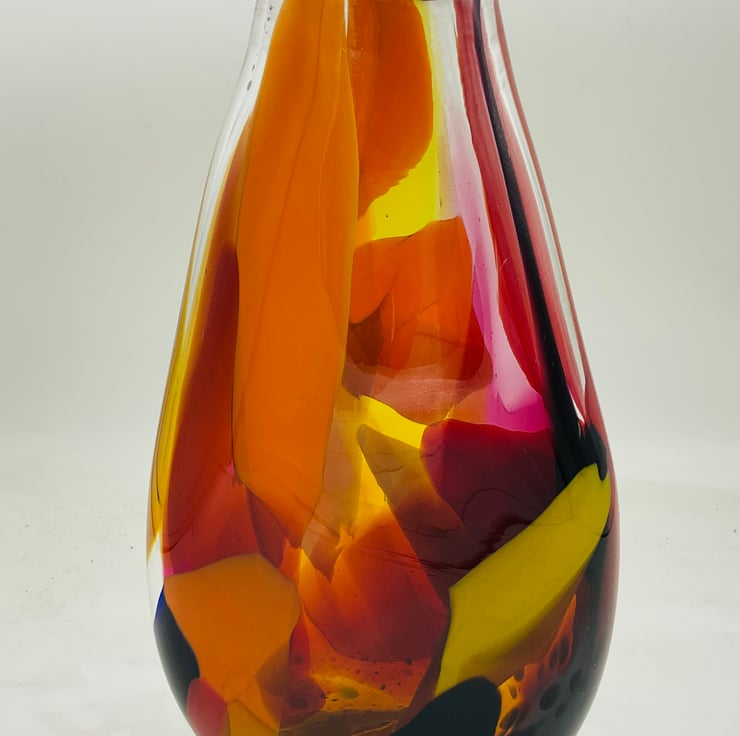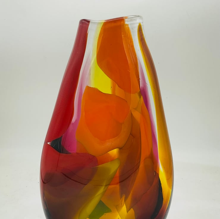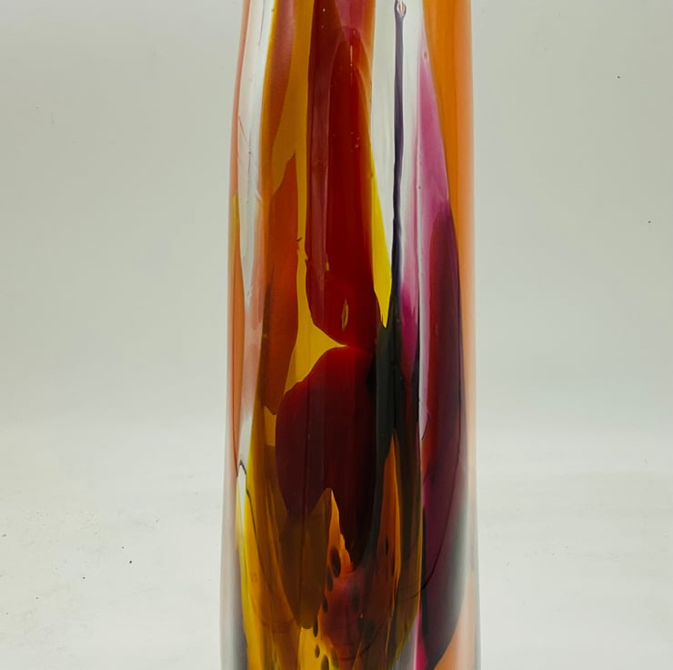 This is the latest in my Brushstroke series.....I absolutely love making these...they are just so much fun and I hope you can get a feel of this from the images...whilst I know what the colours will be it’s always exciting opening up the lehr ( kiln) the following morning to see exactly how the colours have interacted with each other and pulled and distorted.