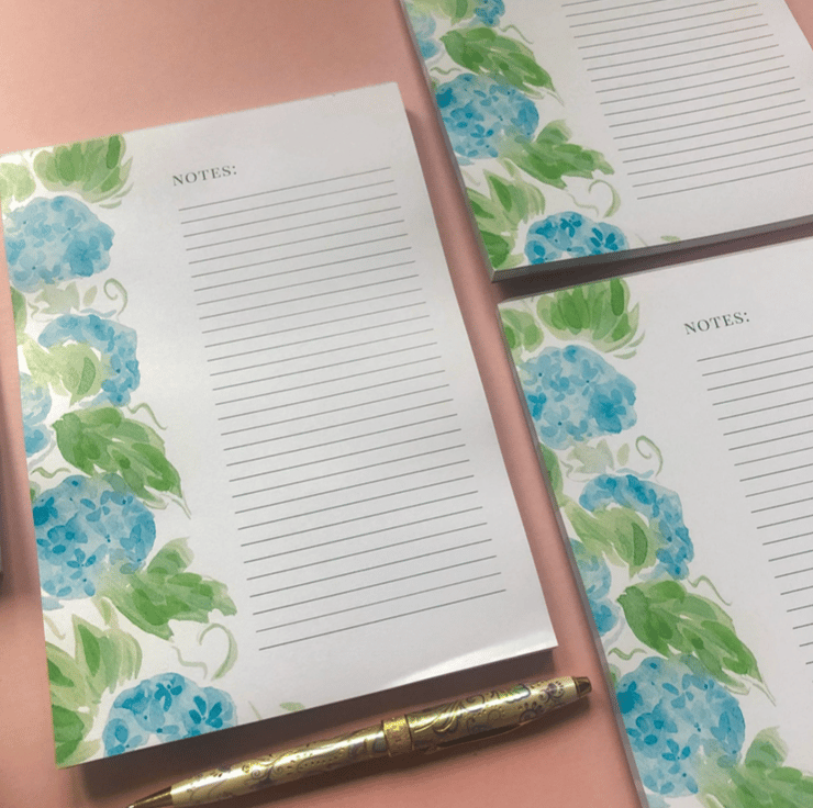 A5 Blue Flower Notepad, Hydrangea Art, Eco Friendly Stationery