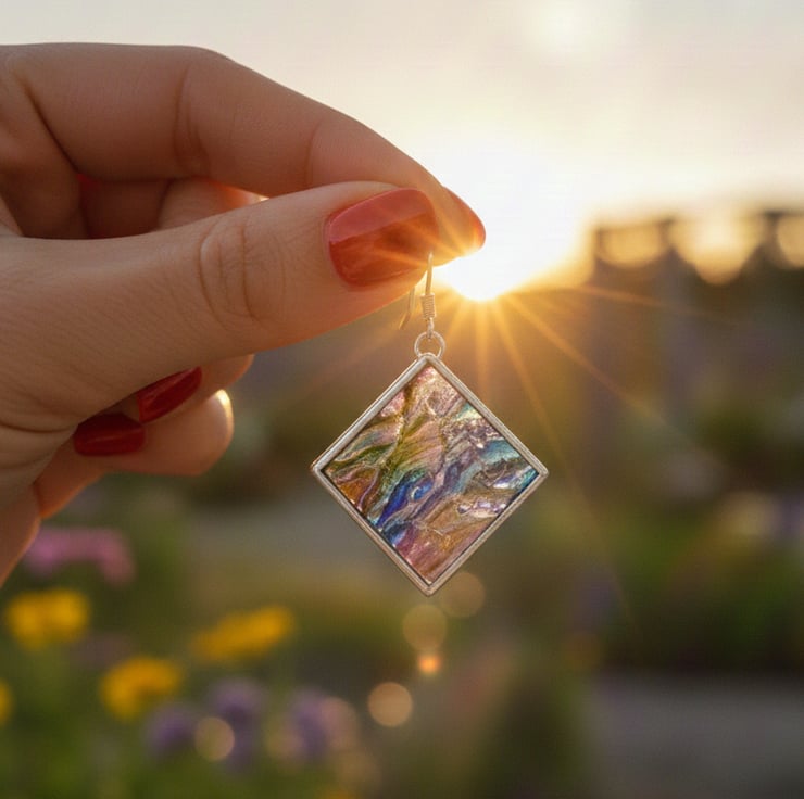 Bring the glow of stained glass to your everyday style with these handcrafted earrings! Each pair is made with care using real stained glass and finished with lead-free solder.