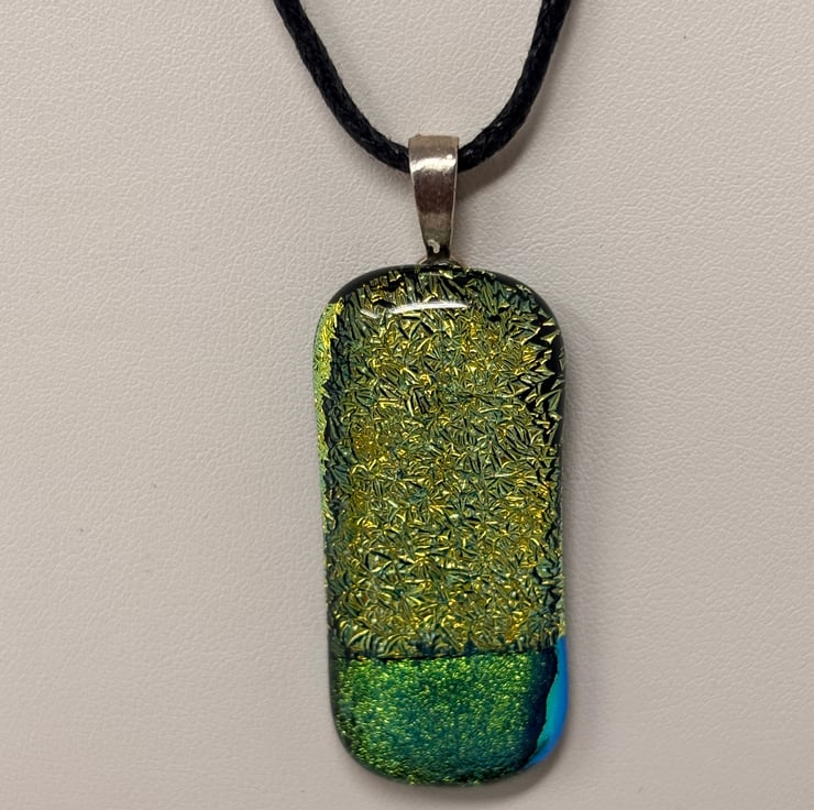 "Please note that glass reflects and shifts colours depending on the lighting and angle. While I strive to capture its beauty in photos, the pendant may appear slightly different in person due to its unique reflective nature."