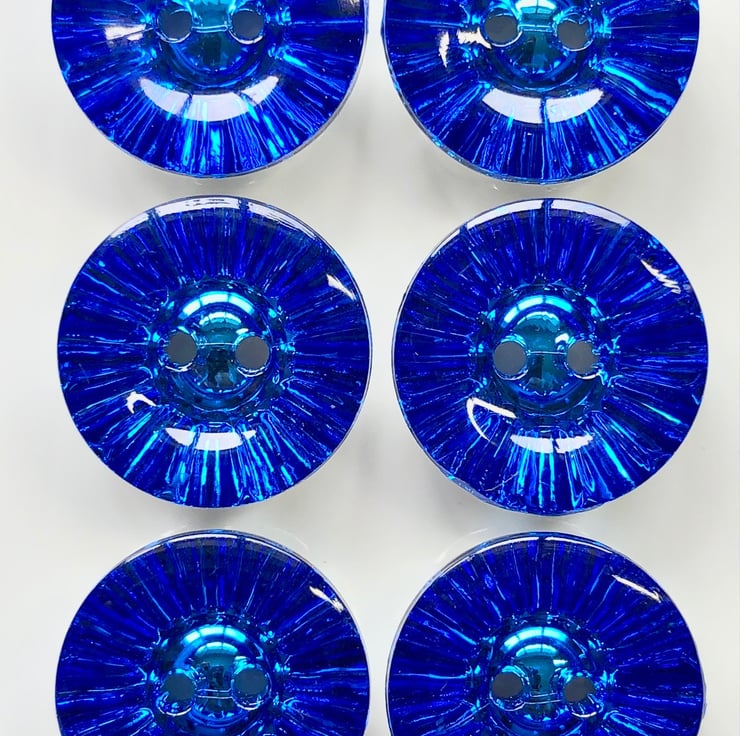 These Fabulous Blue Acrylic Crystal Style Dish Buttons, sold in Packs of 6, are 13mm wide.