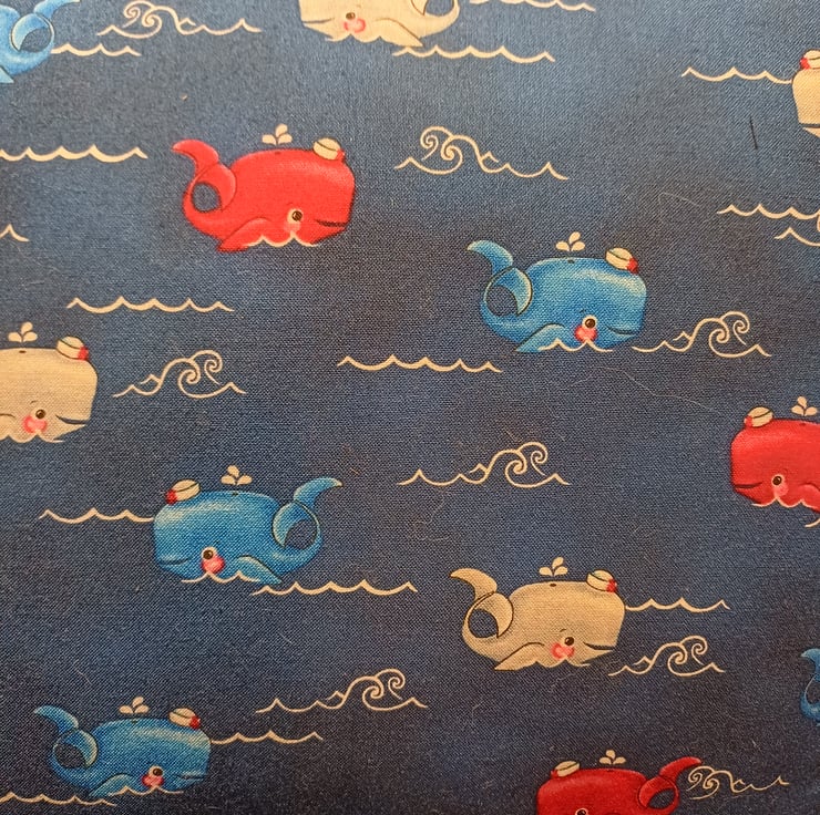 This cute whale themed cushion as multi whales in different colours on a dark blue background, it has the same design on both side, there is a zip at the bottom for easy washing and the polypropylene insert is sponge clean only. it measures 13 inches by 13 inches approx.
