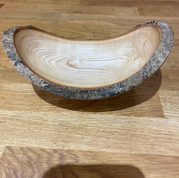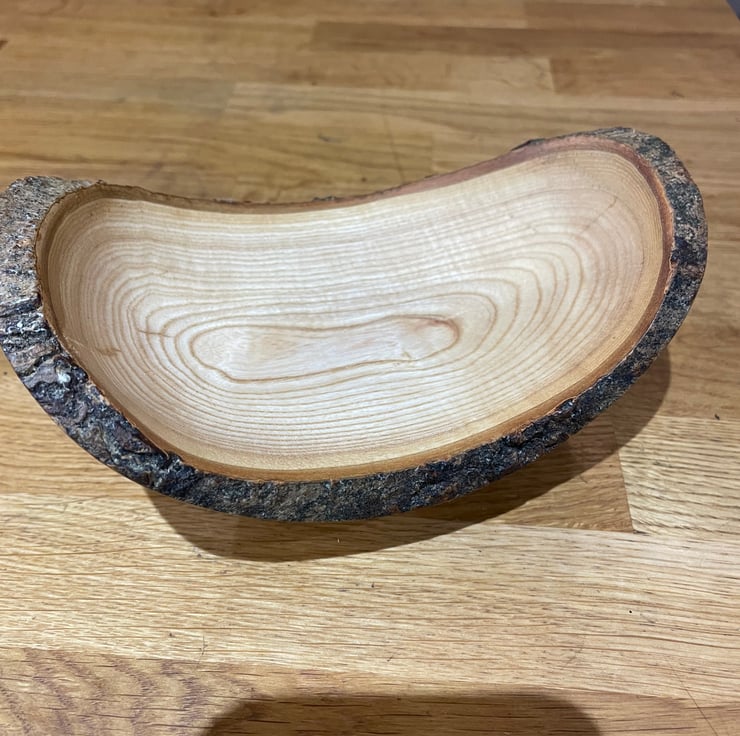 I love turning live-edged dishes because leaving the bark on lets the tree’s character shine. The rough edges, the texture, they give each piece life and tell the story of the wood