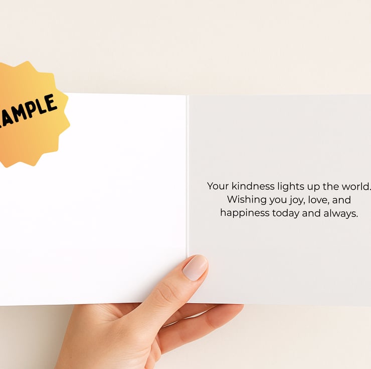Your message can be a single short line or up to 250 characters, and will be printed centred on the right-hand side inside the card.