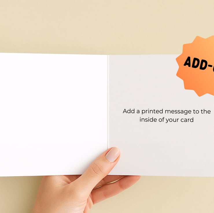 All of our cards are blank inside with a smooth finish, so you can absolutely write your own message if you’d like. Or if you prefer, you can add a printed personalised message by purchasing this add-on alongside your card.