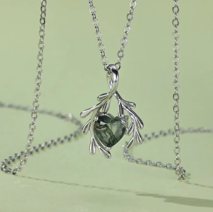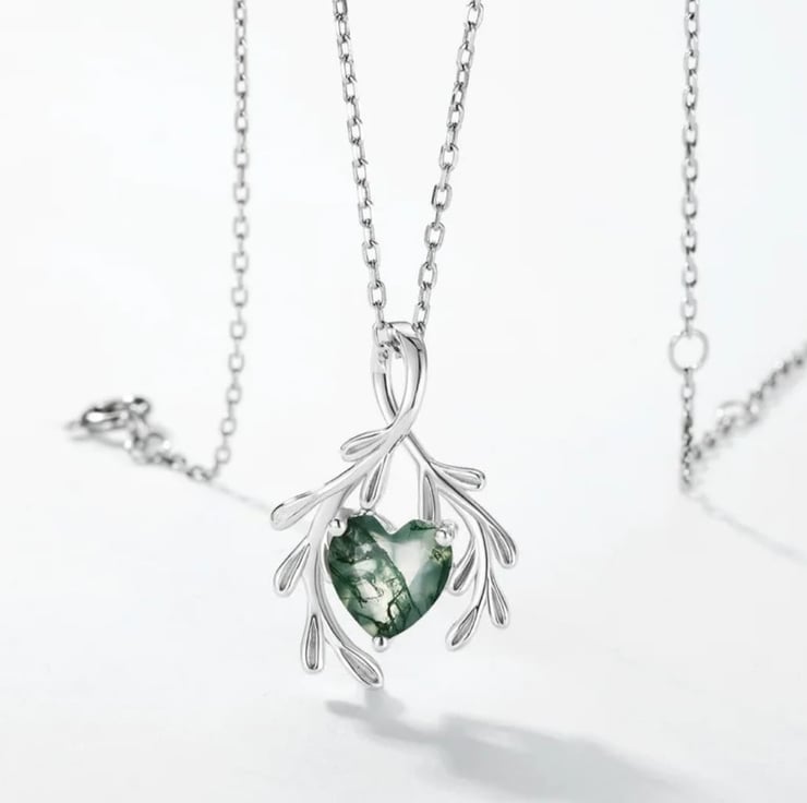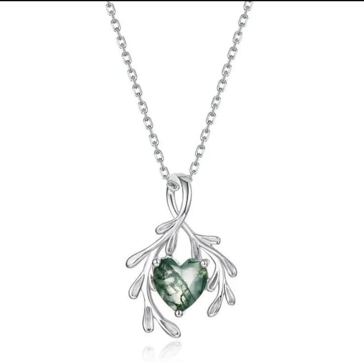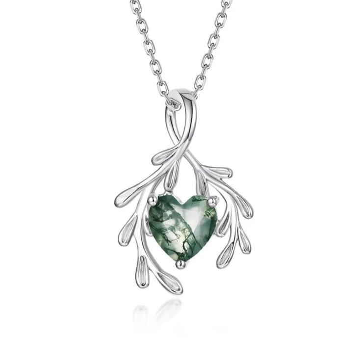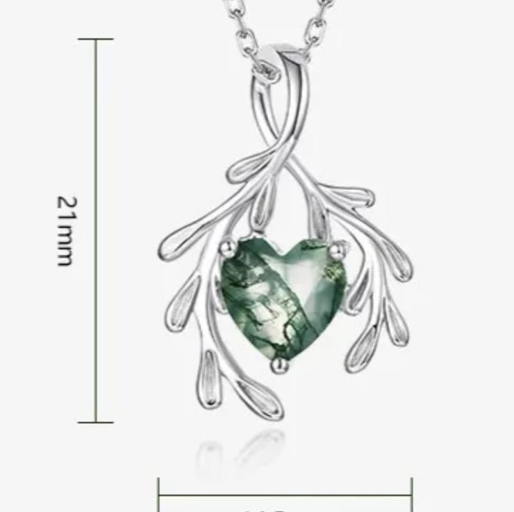 Natural Beautiful Moss Agate stone Pendant Heart Shape With S925 Silver chain For Ladies Woman Girls For Christmas Birthday Anniversary Gift