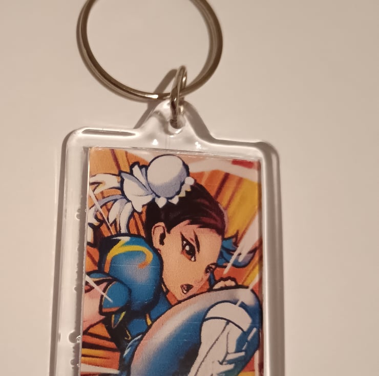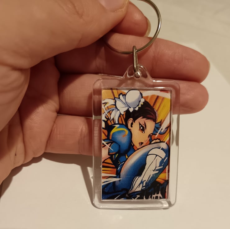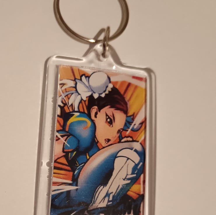 Really cool keyring featuring photography of some street art of Chun-Li from the game, Street Fighter. Photography taken by myself. Opposite side is blank