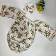 Soft and breathable baby romper made from 100% cotton, featuring a vibrant, artistic print with playful details. Designed with elasticized neckline, cuffs, and leg openings for comfort and easy wear. Comes with a matching headband to complete the look—perfect for everyday wear or special moments.