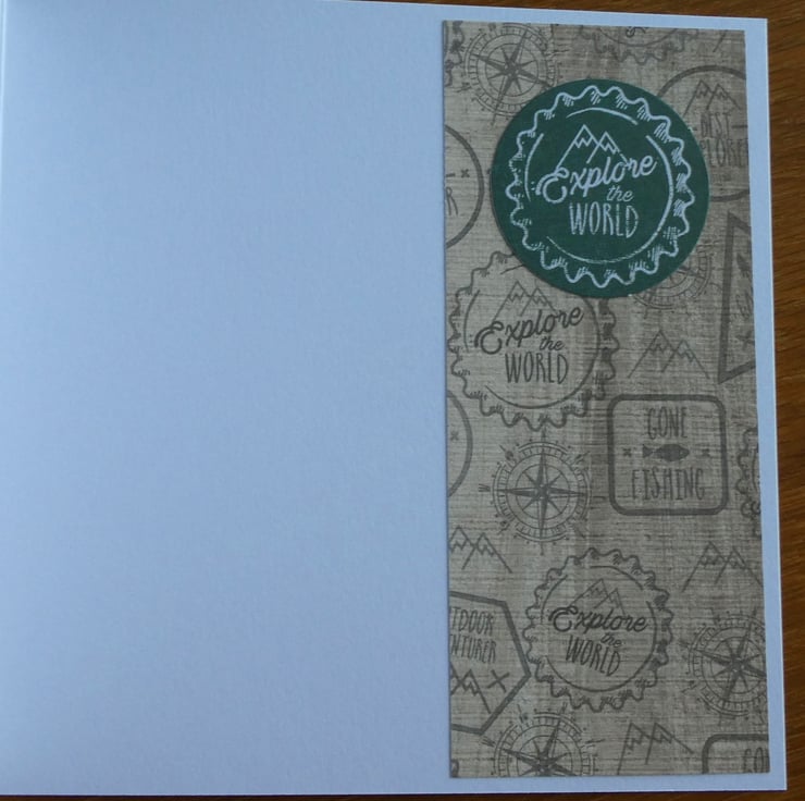 Inside the card is a strip of matching paper with a further message, this time with the words Explore The World. Plenty of space has been left for your own birthday message.