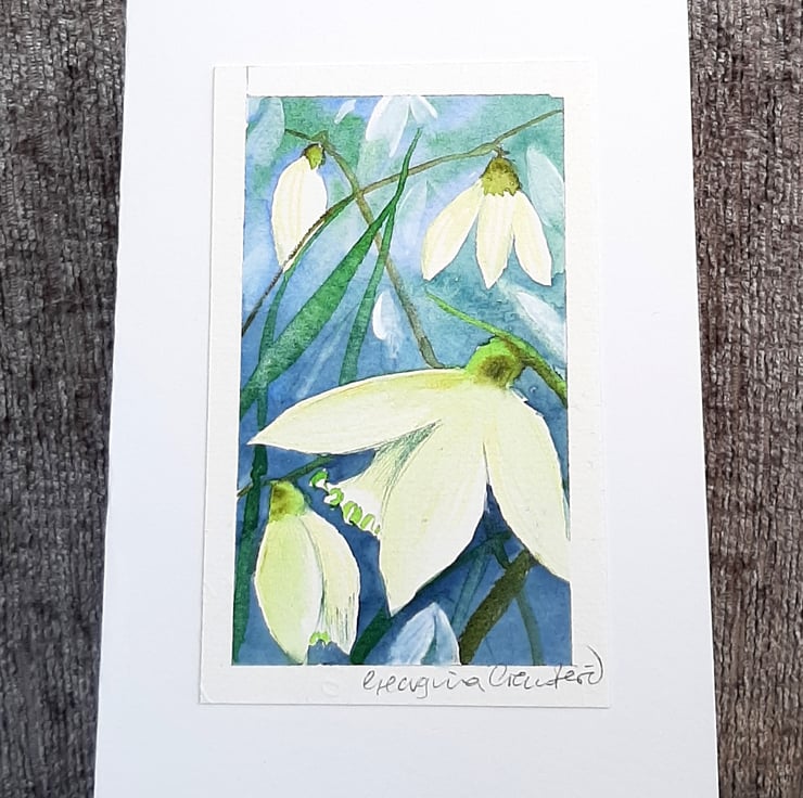 Handpainted Watercolour, mounted onto hand cut, soft-white Card.