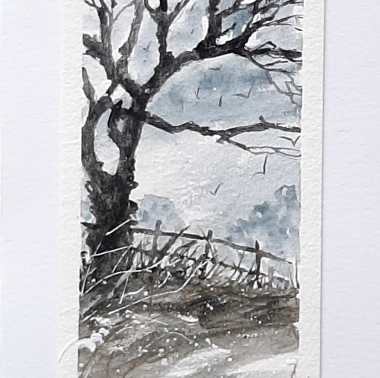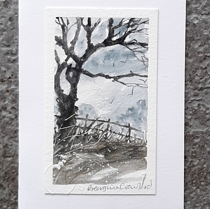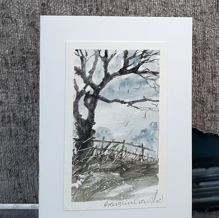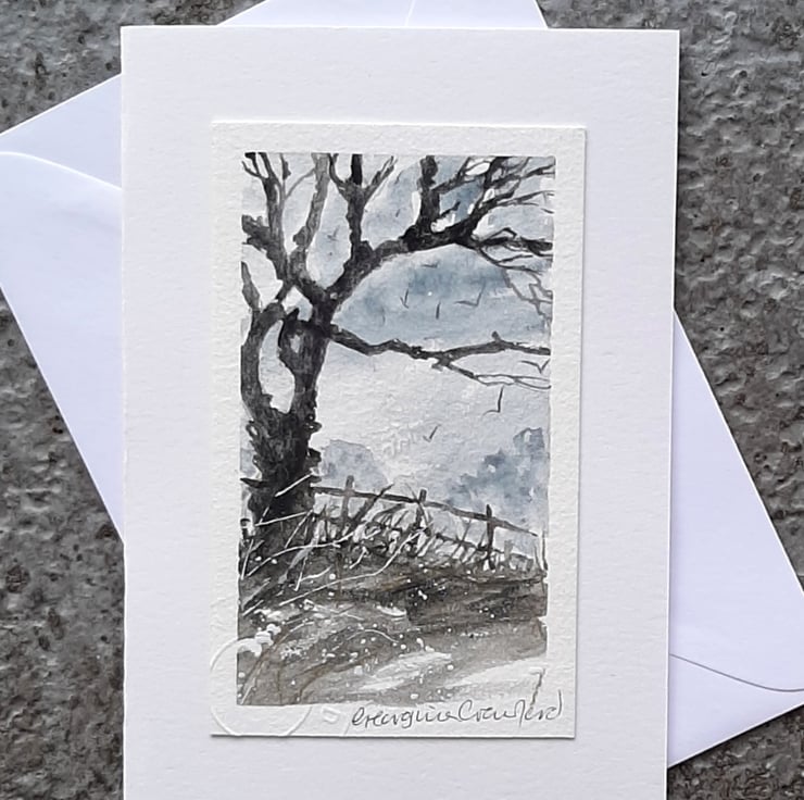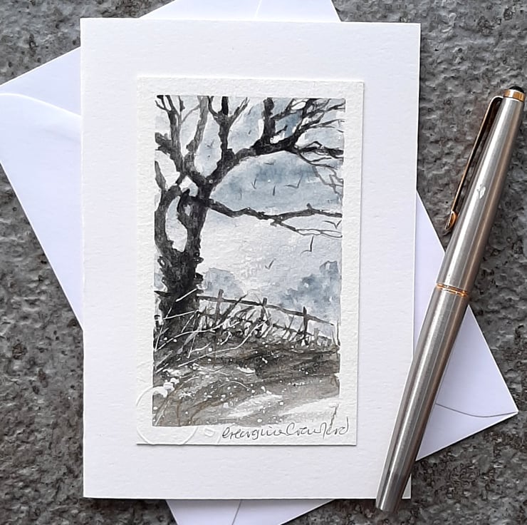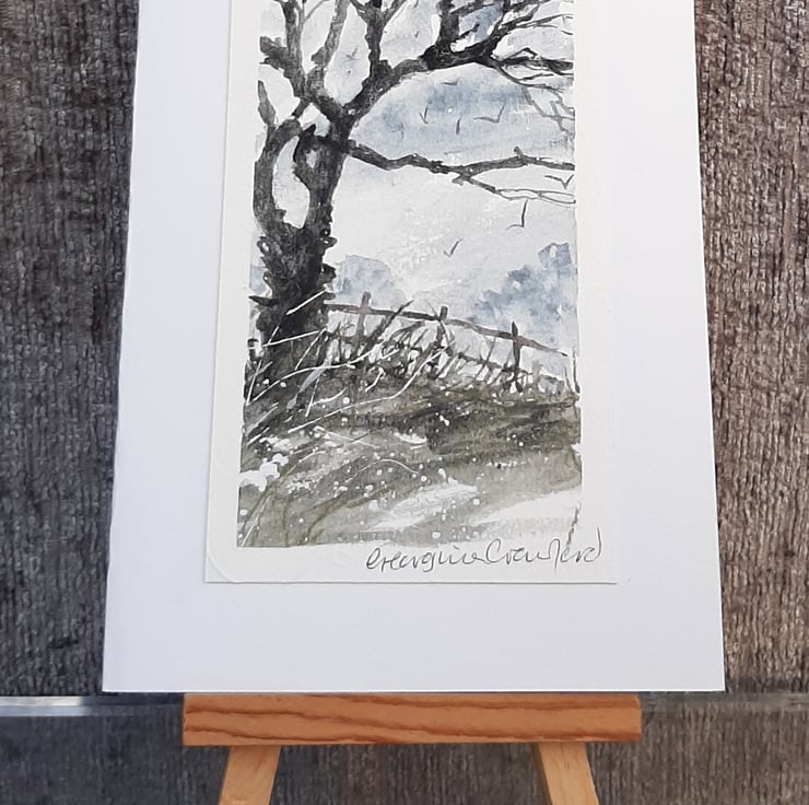 Handpainted Watercolour, mounted onto hand cut, soft-white Card.