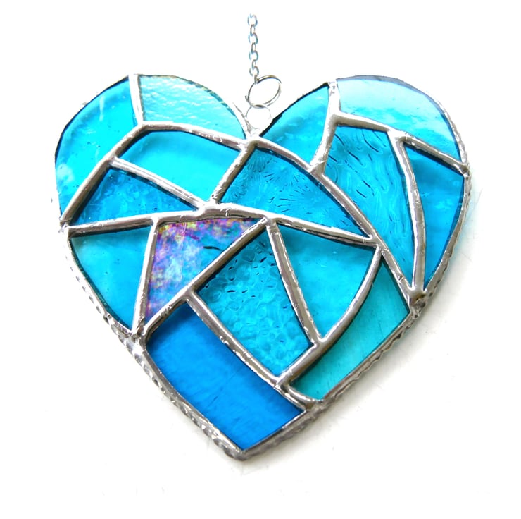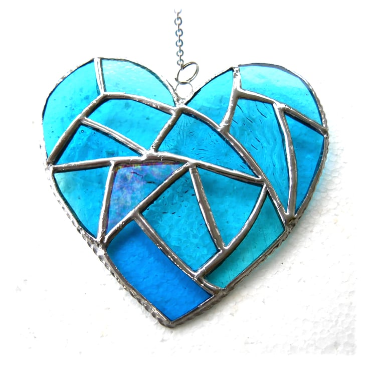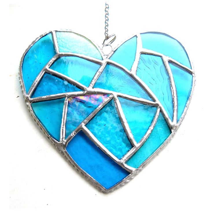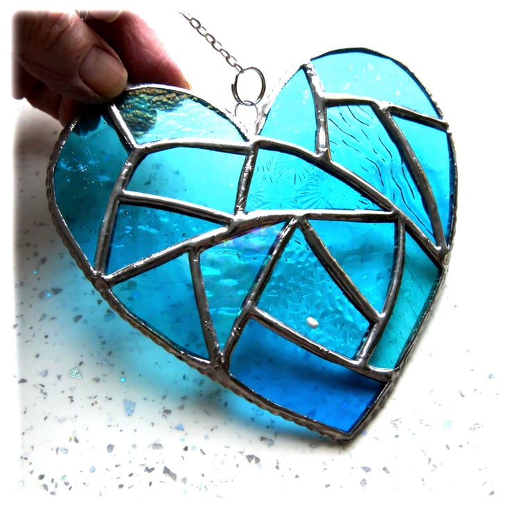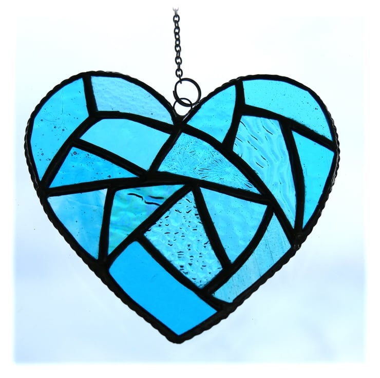 I have used lots of different types and shades of sea colours, turquoise and teal glass to make a wonderfully pretty suncatcher .