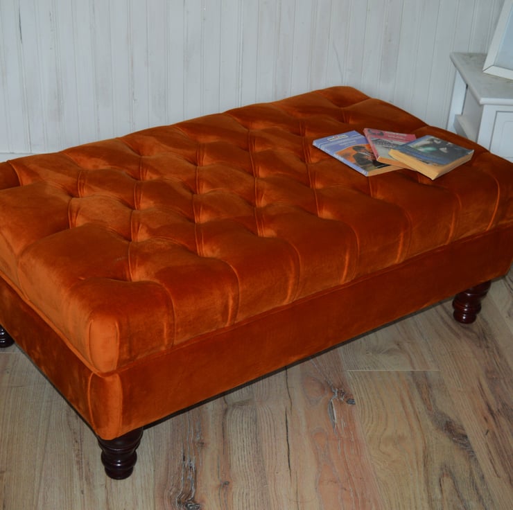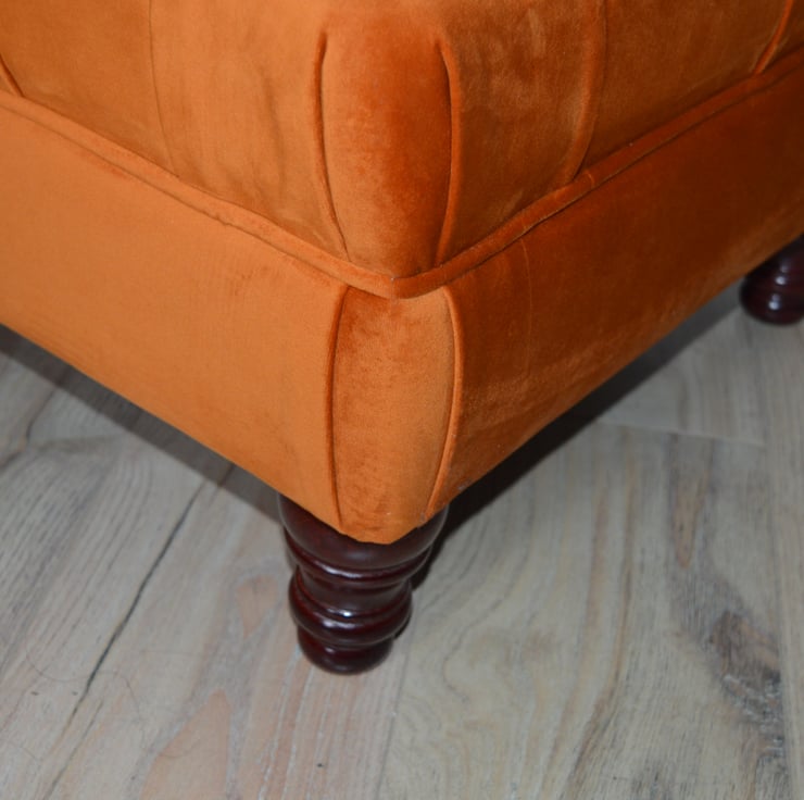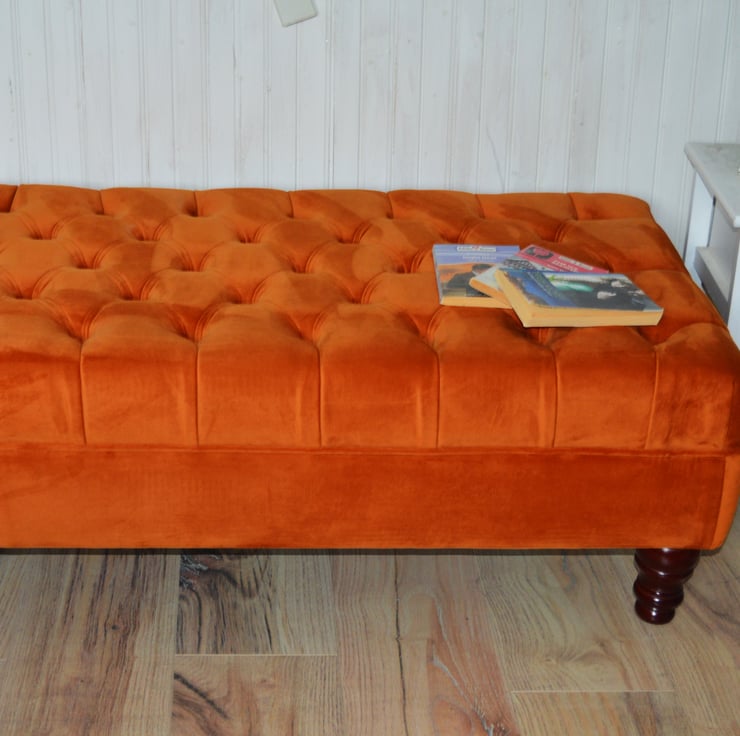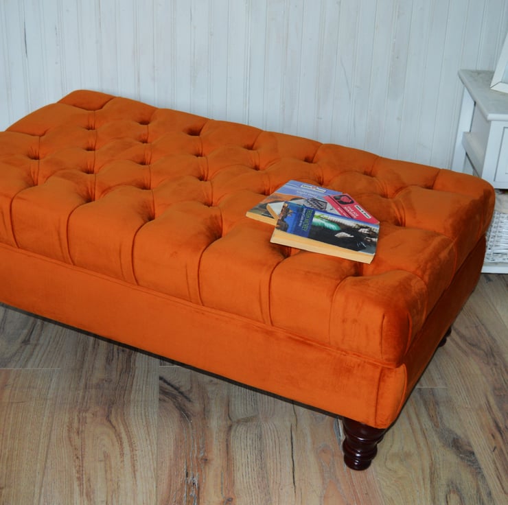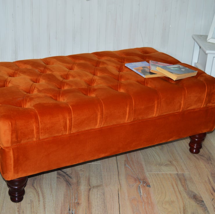 Add a touch of elegance and style to your living space with this stunning Chesterfield Design Deep Button Footstool. The footstool is expertly crafted with premium quality velvet fabric in a beautiful burnt orange colour that will easily complement your existing home decor. The footstool is not only a great addition to your home, but it also comes with a 1-year manufacturer warranty for added peace of mind. Measuring 100cm in length, 56cm in width and 36cm in height, this footstool is perfect for use in any room of your home, including the conservatory, children's playroom, porch, kitchen, bedroom, living room, home office/study, children's bedroom, patio, hallway, dining room, and utility/laundry room. With a weight of 20kg, it is also easy to move around as needed.