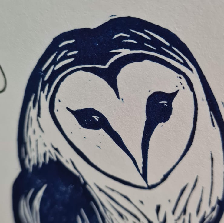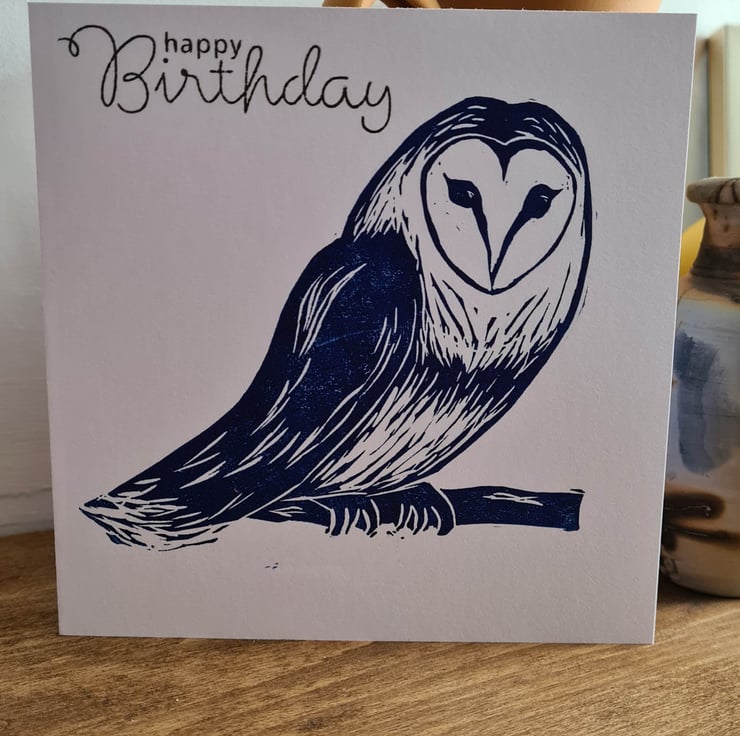 This is an original handprinted birthday card of an owl using a linocut designed and carved myself. I take inspiration from nature and enjoy printing and painting animals and flowers etc.