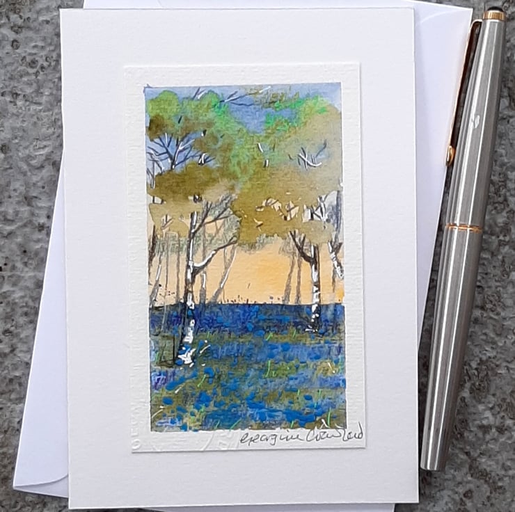Handpainted Watercolour, mounted onto hand cut, soft-white Card.