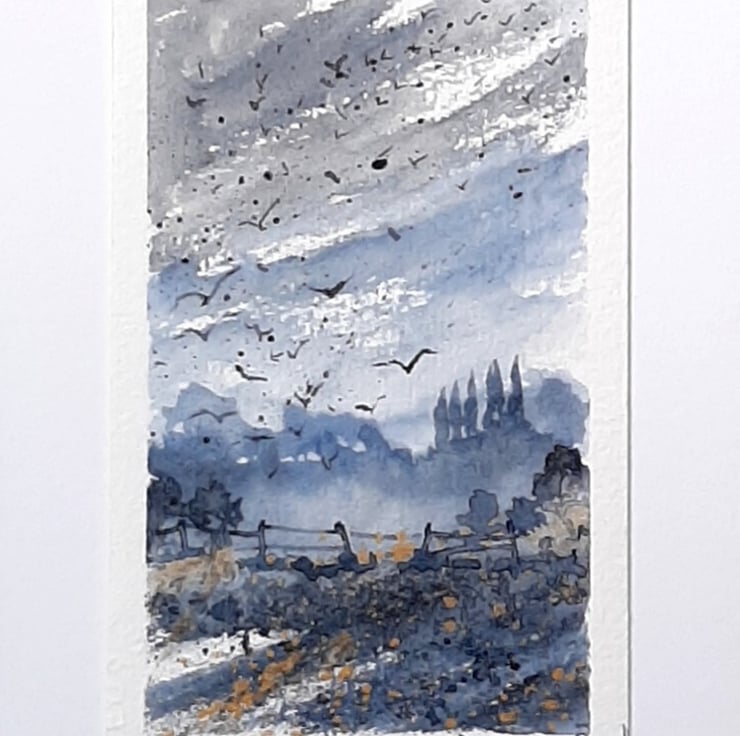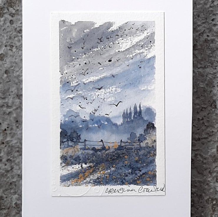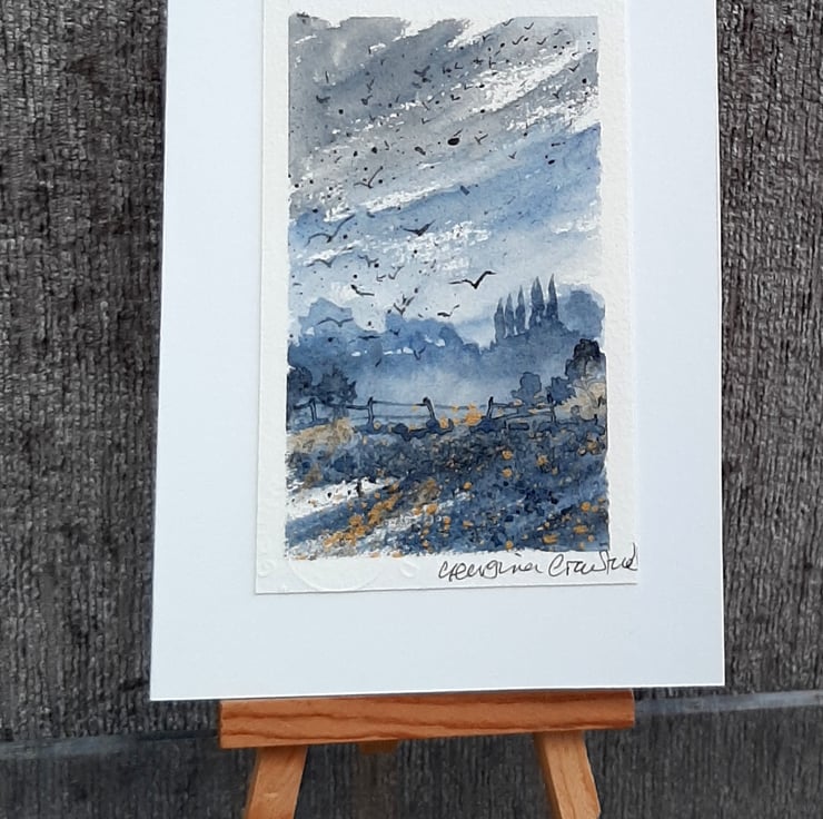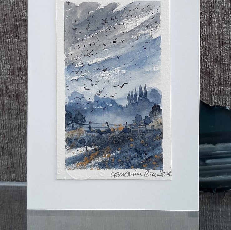 Handpainted Watercolour, mounted onto hand cut, soft-white Card.
