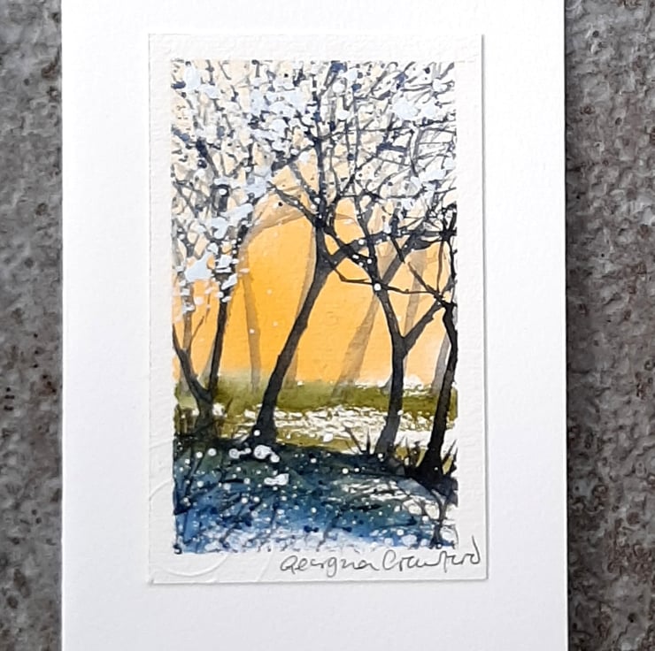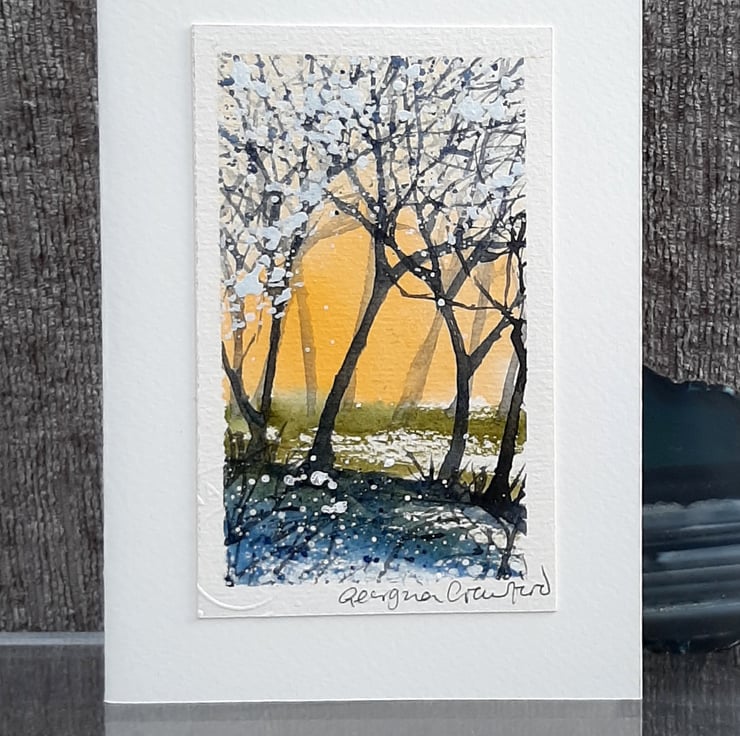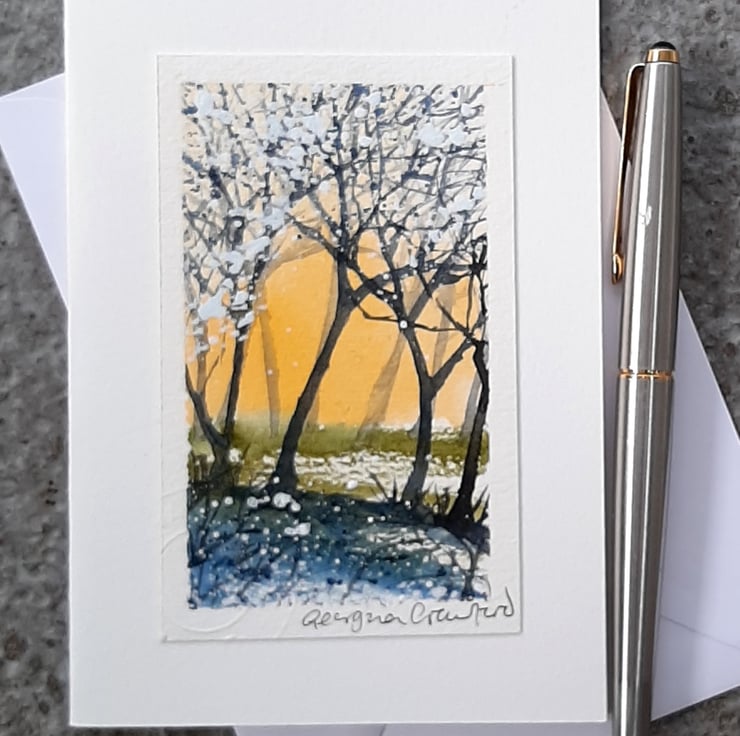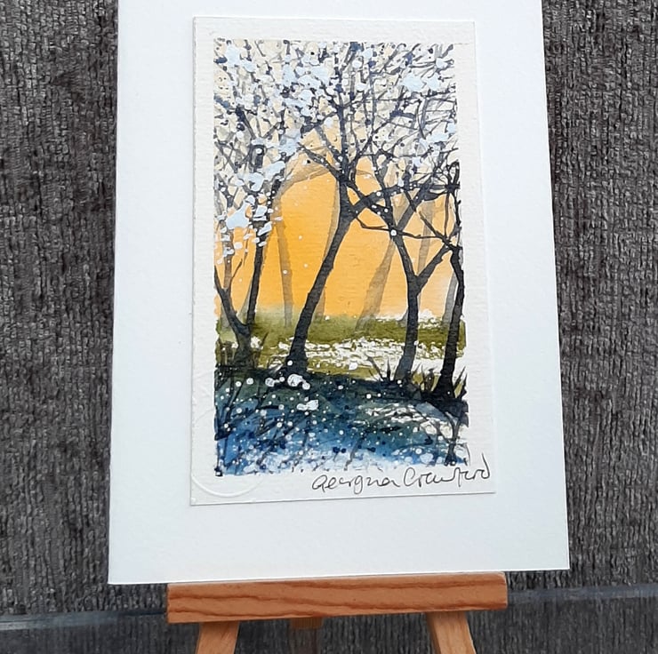 Handpainted Watercolour, mounted onto hand cut, soft-white Card.