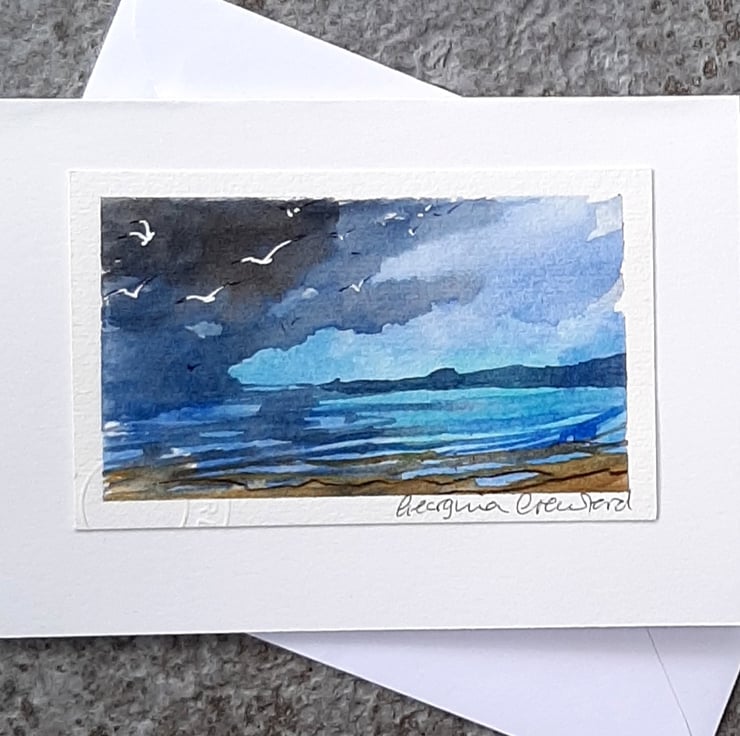 Handpainted Watercolour, mounted onto hand cut, soft-white Card.