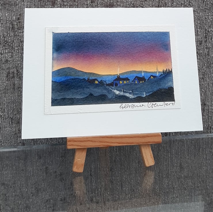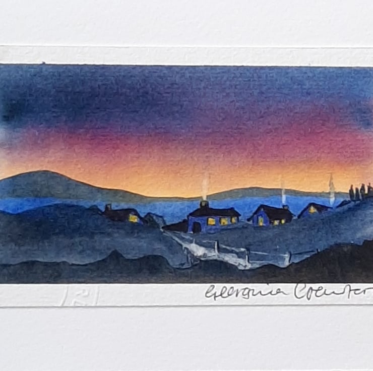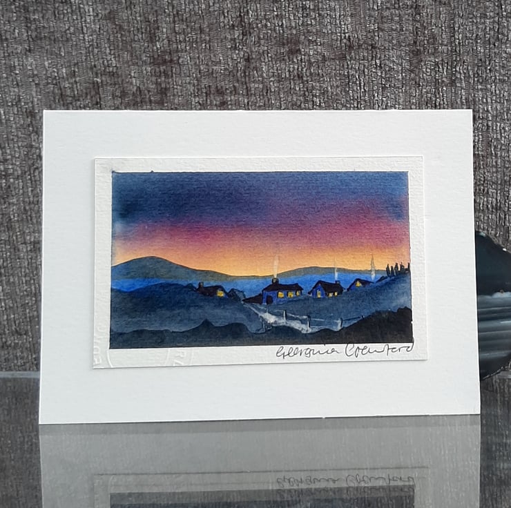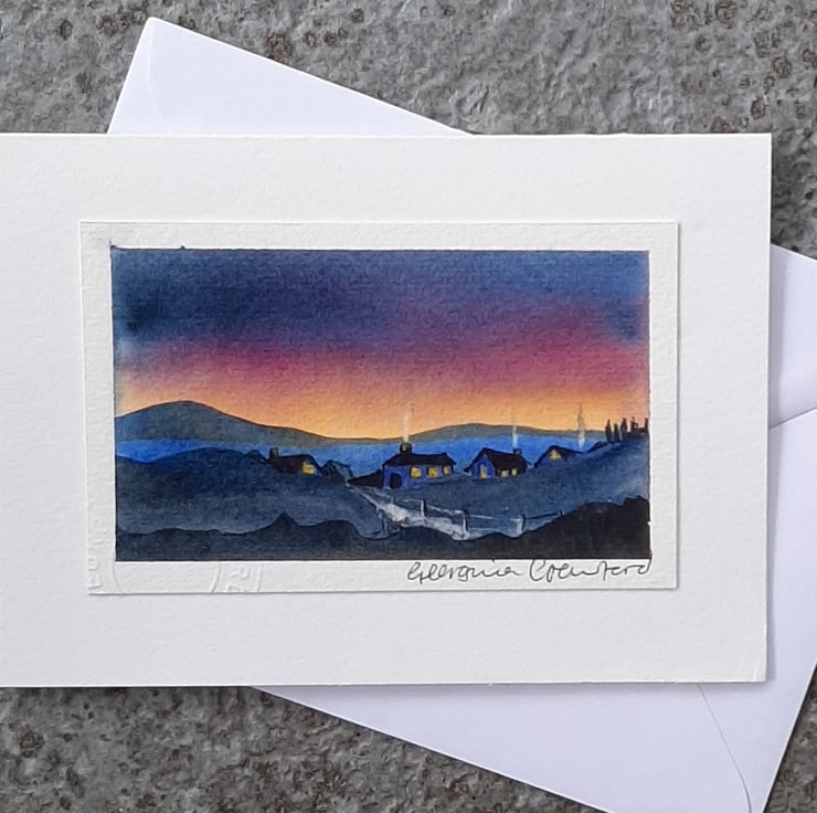 Handpainted Watercolour, mounted onto hand cut, soft-white Card.