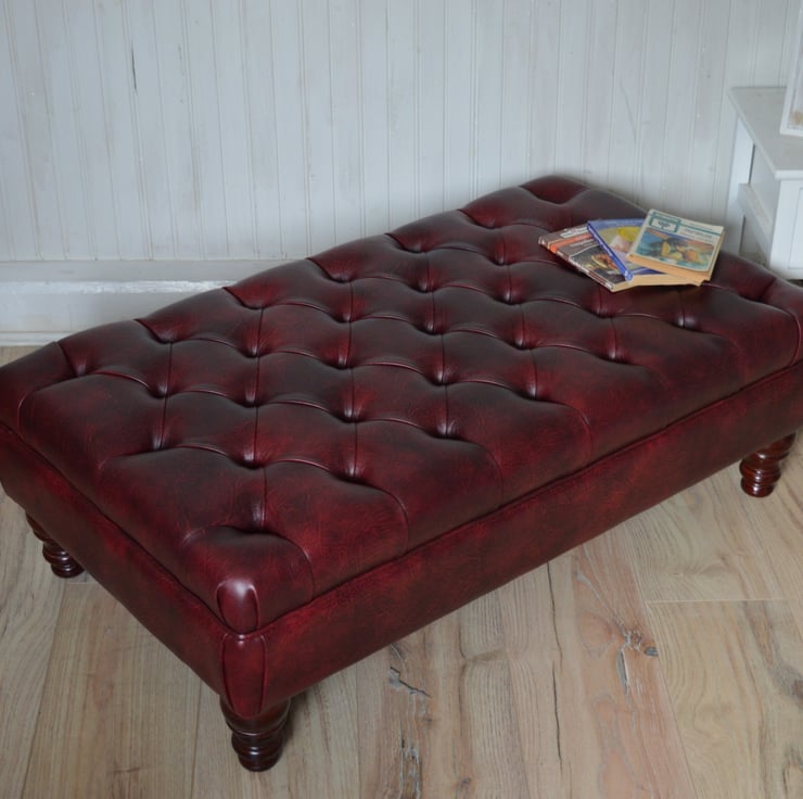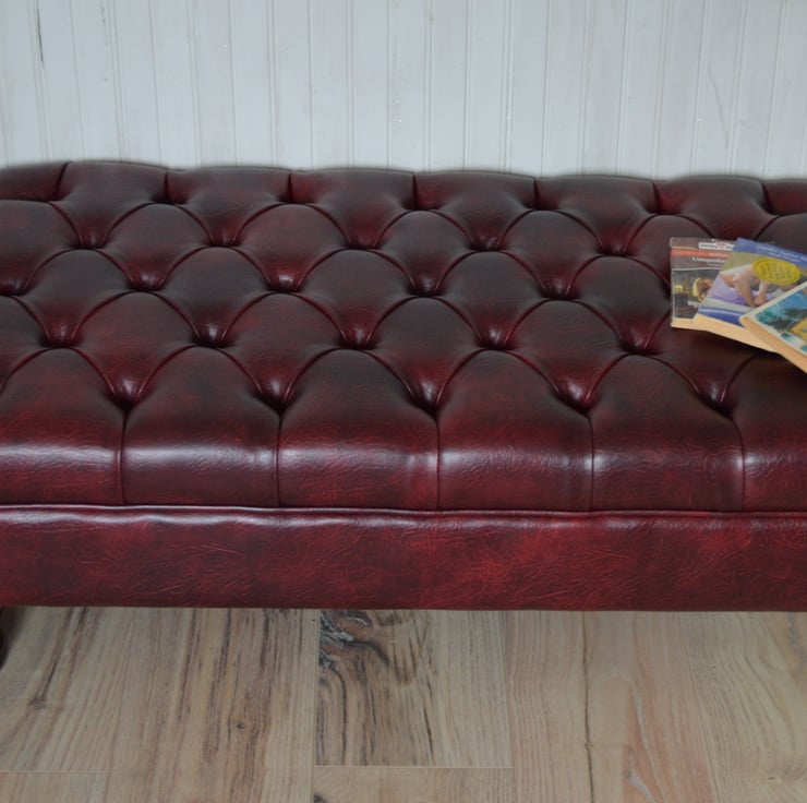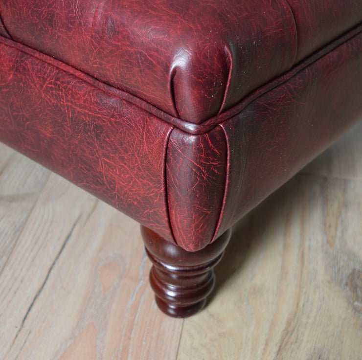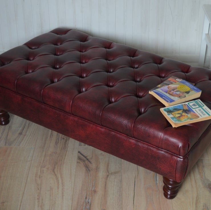 Add a touch to your living space with this stunning Chesterfield Design Deep Button Footstool. The footstool is expertly crafted with premium quality wine faux leather that will easily complement your existing home decor. The footstool is not only a great addition to your home, but it also comes with a 1-year manufacturer warranty for added peace of mind. Measuring 100cm in length, 56cm in width and 36cm in height, this footstool is perfect for use in any room of your home, including the conservatory, children's playroom, porch, kitchen, bedroom, living room, home office/study, children's bedroom, patio, hallway, dining room, and utility/laundry room. With a weight of 20kg, it is also easy to move around as needed.