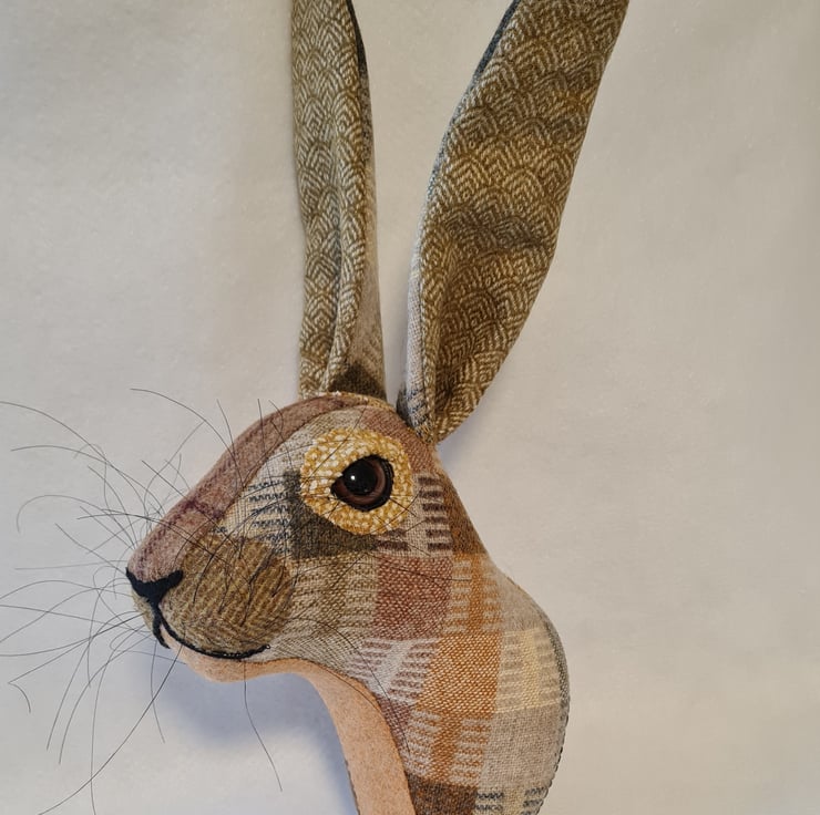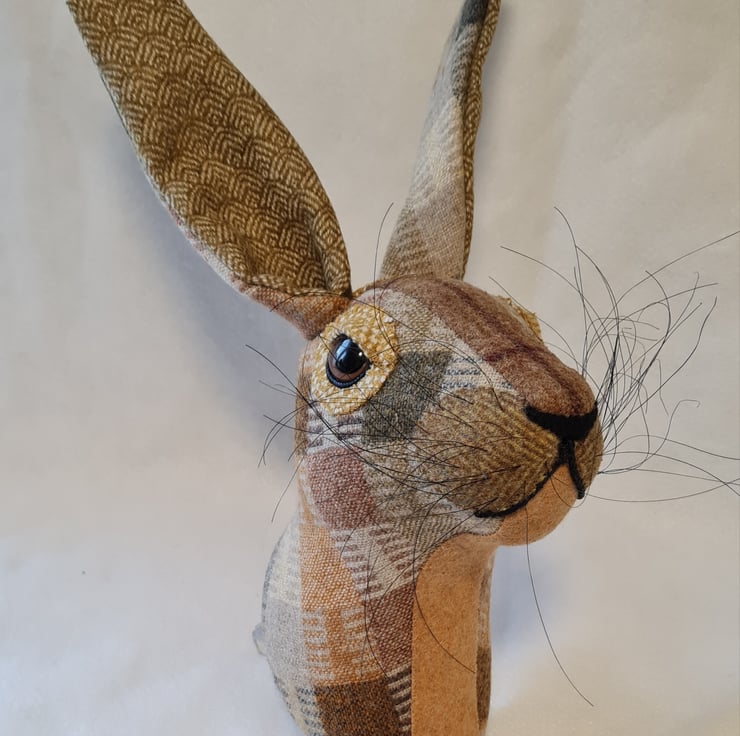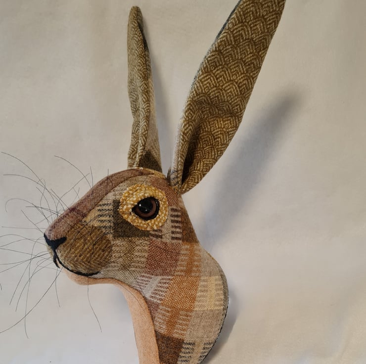 A larger than life faux hare, which I have handmade and covered in hand stitched Abraham Moon wool fabric.