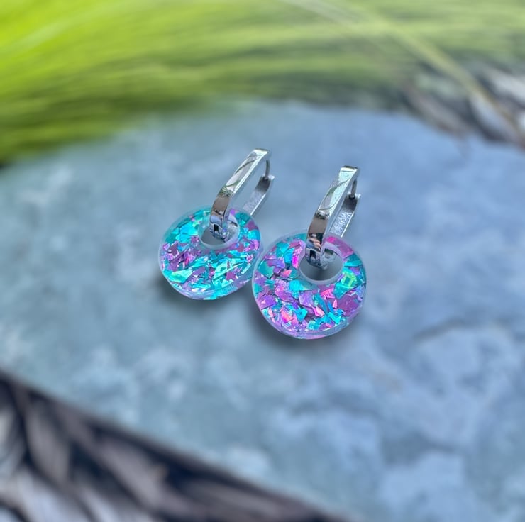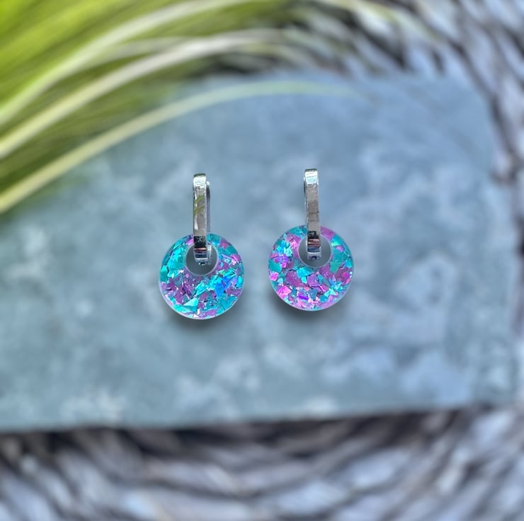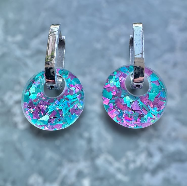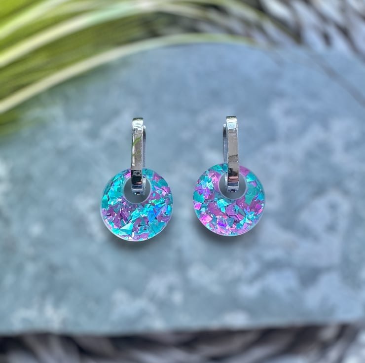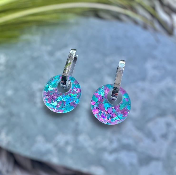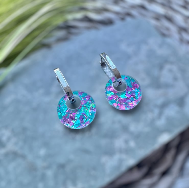 Light blue and pink reflective chunky confetti glitter makes these sparkle with movement and light and the colour combination contrasting yet complementary