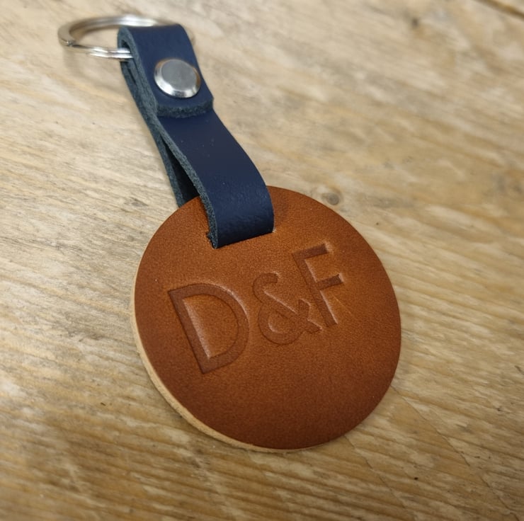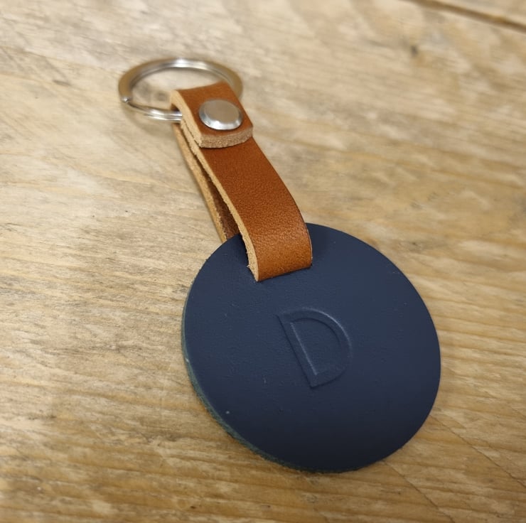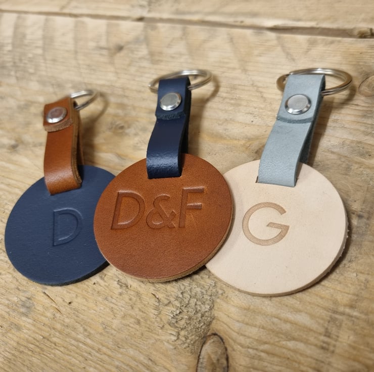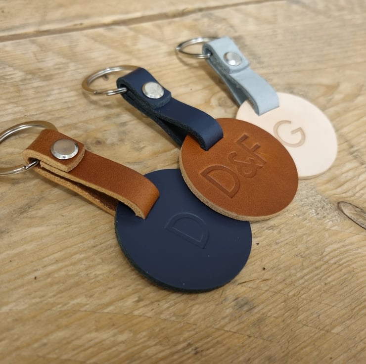 The UK Hand Made Genuine leather Personalised leather Key Ring by Birmingham Leather Co is a modern and stylish accessory for your keys. Made from high quality leather, this key ring features a unique circle shape and multi-coloured design. You can personalised it with your initials or name, adding a personal touch to your collection. Crafted in the United Kingdom, this detachable keyring is a practical and durable item that will elevate your everyday essentials.