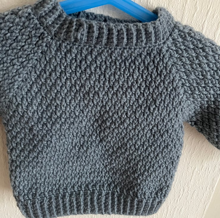 Cute grey baby sweater with a soft, round neck and long sleeves, perfect for little ones to stay cozy. Made from super-soft yarn, it's ideal for daily wear, and the neutral colour goes with everything. It’s perfect for 9 to 18 months babies. Machine washable.