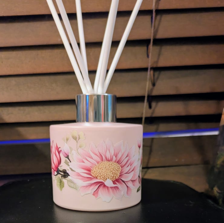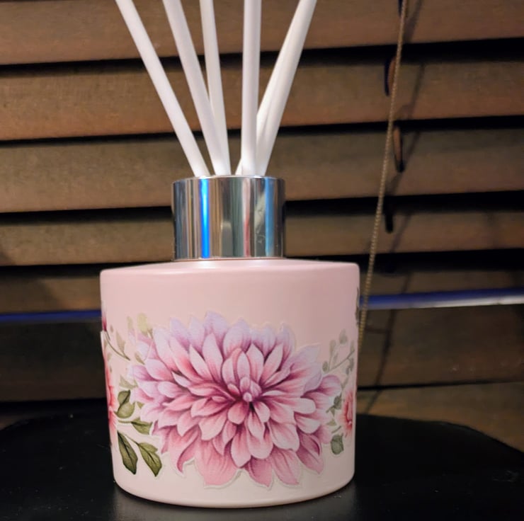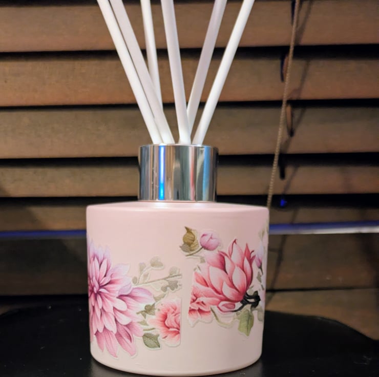 Pink floral themed glass 150 ml diffuser bottle with reeds sticks