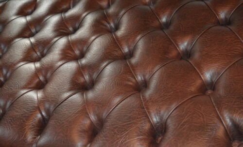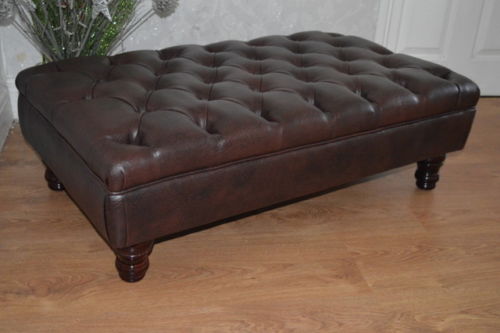 Chesterfield Design Deep Button Footstool in a Premium Faux Dark Brown Leather