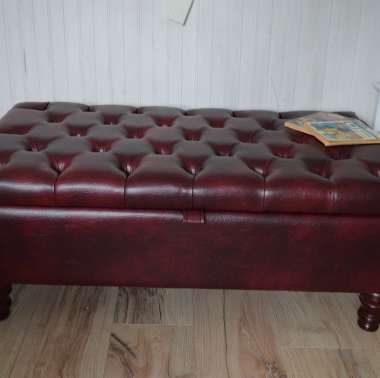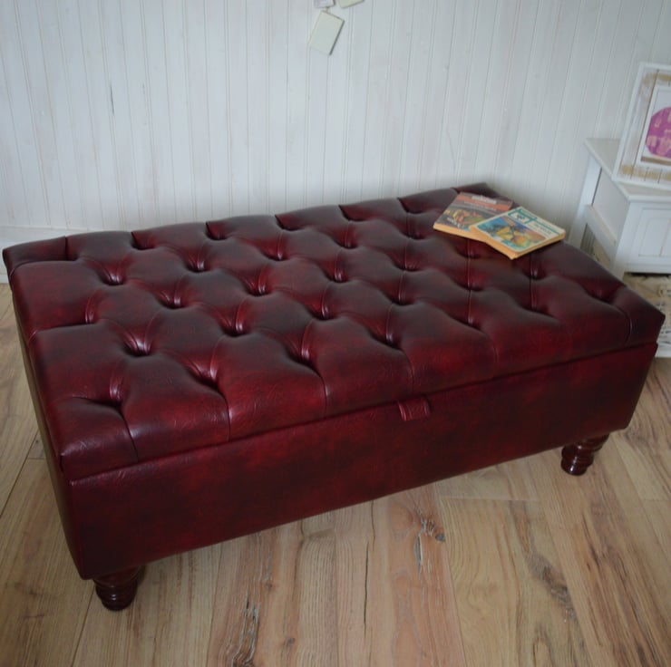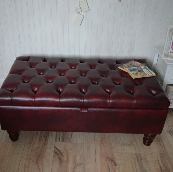 Add elegance and style to your living space with this stunning storage ottoman Chesterfield Design Deep Button Footstool. The footstool is expertly crafted with premium wine faux leather that will easily complement your existing home decor. The footstool is not only a great addition to your home, but it also comes with a 1-year manufacturer warranty for added peace of mind. Measuring 100cm in length, 58cm in width and 40cm in height, this footstool is perfect for use in any room of your home, including the conservatory, children's playroom, porch, kitchen, bedroom, living room, home office/study, children's bedroom, patio, hallway, dining room, and utility/laundry room. With a weight of 20kg, it is also easy to move around as needed.