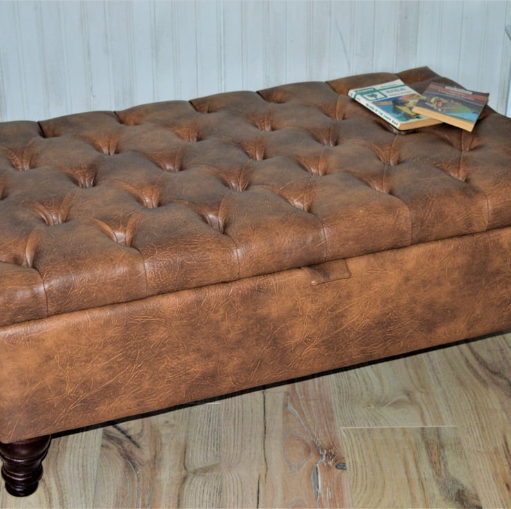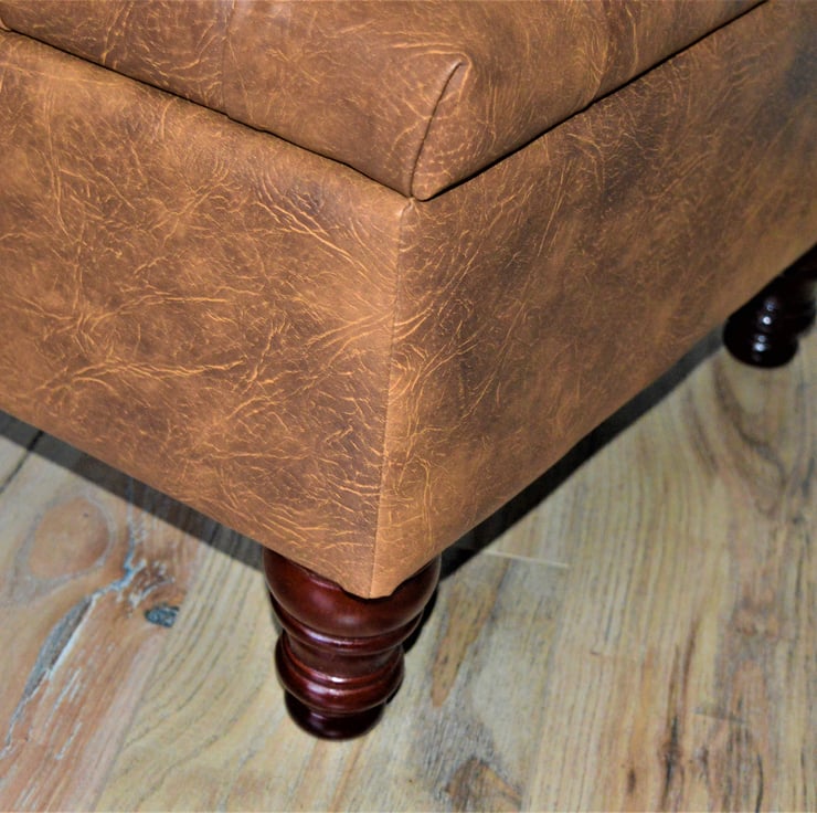 Chesterfield Style Deep Button Footstool in a Premium Tan Faux Leather