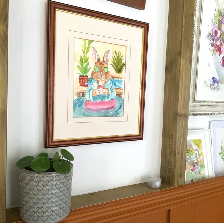 Start the new year with a smile and a little bunny love. Calm as a cucumber - bunny in the spa - hand-painted watercolour featuring a spa-loving rabbit indulging in some serious self-care. Perfect for January gifting, bathroom décor, nursery art or a quirky gallery wall. Makes a thoughtful gift for wellness lovers, bunny fans, or anyone who needs a gentle nudge to relax or anyone embracing a fresh, cosy reset.