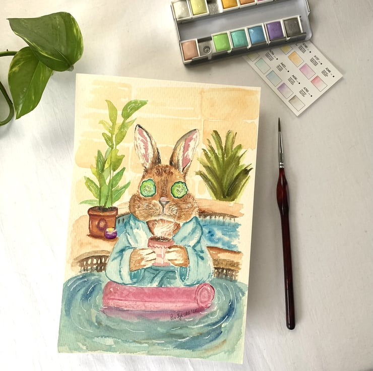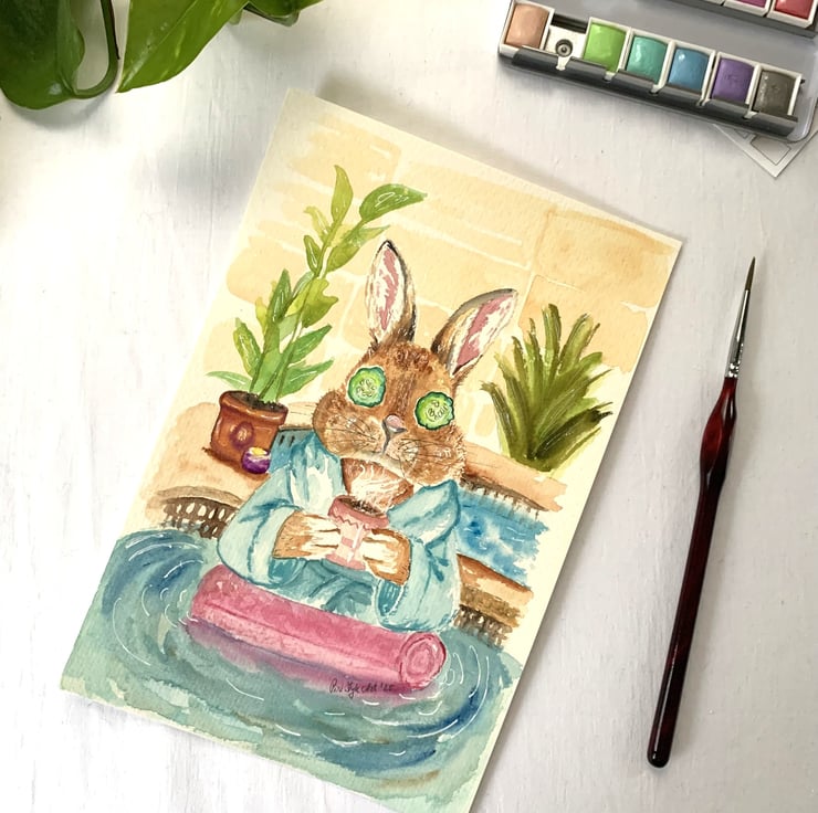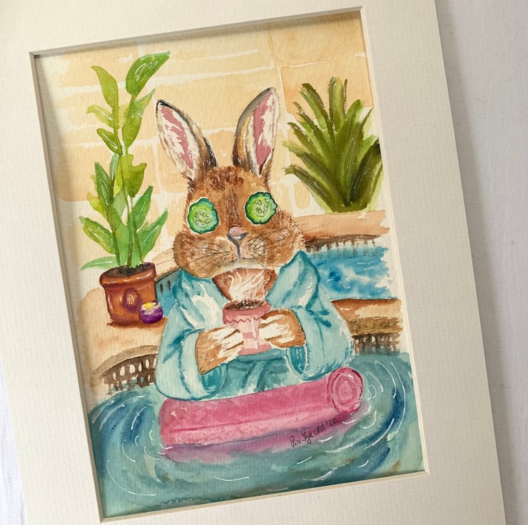 Bunny in the Spa - Original Watercolour painting