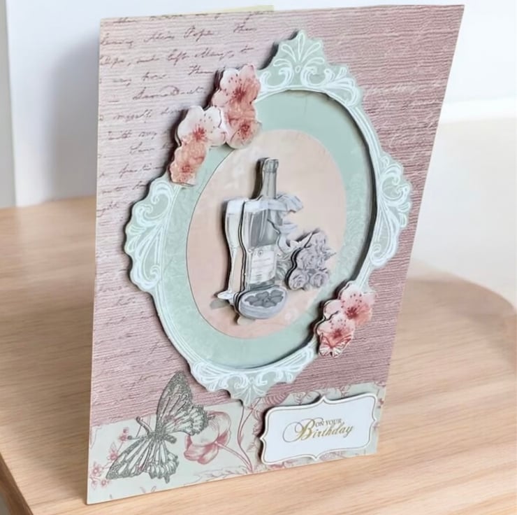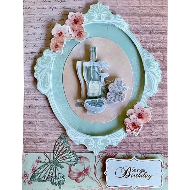 Celebrate a special birthday with this beautifully handcrafted decoupage card, designed to feel luxurious and elegant.