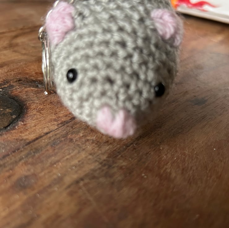 Handmade crocheted mouse keyring