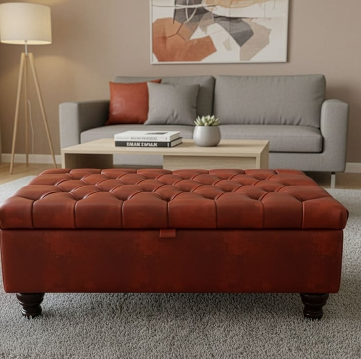 Add a touch of elegance and style to your living space with this stunning Chesterfield storage ottoman Deep Button Footstool. The footstool is expertly crafted with premium chestnut faux leather that will easily complement your existing home decor. The footstool is not only a great addition to your home, but it also comes with a 1-year manufacturer warranty for added peace of mind. Measuring 100cm in length, 56cm in width and 40cm in height, this footstool is perfect for use in any room of your home, including the conservatory, children's playroom, porch, kitchen, bedroom, living room, home office/study, children's bedroom, patio, hallway, dining room, and utility/laundry room. With a weight of 20kg, it is also easy to move around as needed.