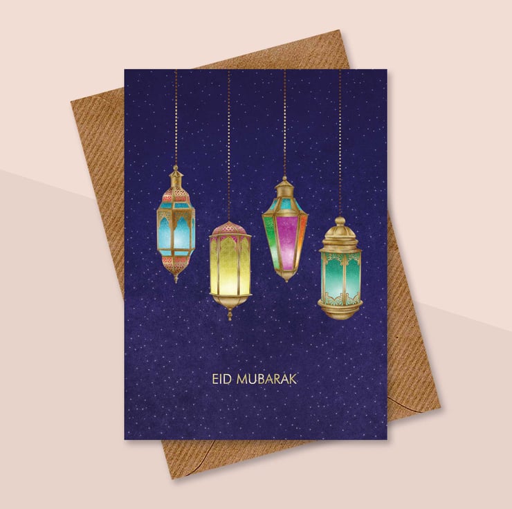 Inspired by the warm glow of traditional lanterns lighting up Eid celebrations, this card reflects joy, blessings, and the beauty of shared moments. Its vibrant colours and intricate patterns capture the festive spirit, making every greeting feel special.