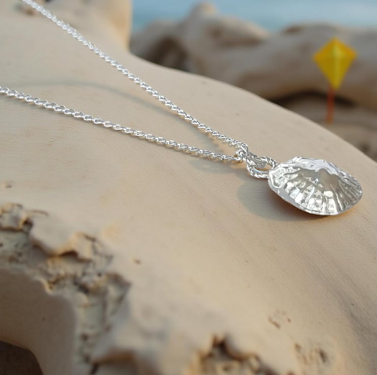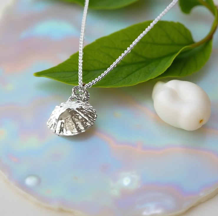 Organic beauty with this this stunning fine silver boho limpet shell necklace crafted and cast from a real shell This organic pendant evokes the essence of coastal charm and bohemian style. Perfect for layering or wearing alone. Suspended from a sterling silver chain in your choice of 40cm or 45cm in length. Ideal for beach lovers and those who appreciate nature inspired, artisan- crafted jewellery.