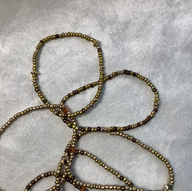 Handmade by me in my home studio in West Midlands. To creating this set of stacking bracelets I’ve used mixed beads metals ones, plastic ones, different charms ,colours and textures. Approx 18 cm size, all together you get 6 bracelets. Please note: Colours may vary due to different viewing platforms and devices.
