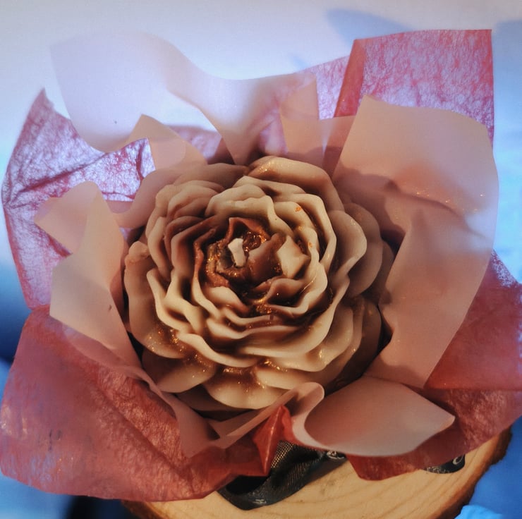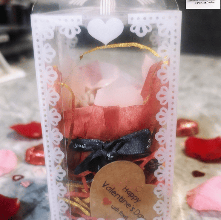 - Unique Design: Light-toned wax formed into intricate rose swirls, encased in translucent pink and deep red paper petals for a realistic floral presentation.