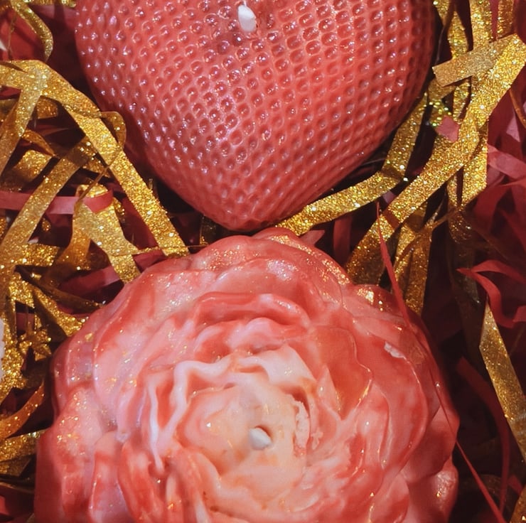 - A textured red heart candle (representing deep, lasting love)