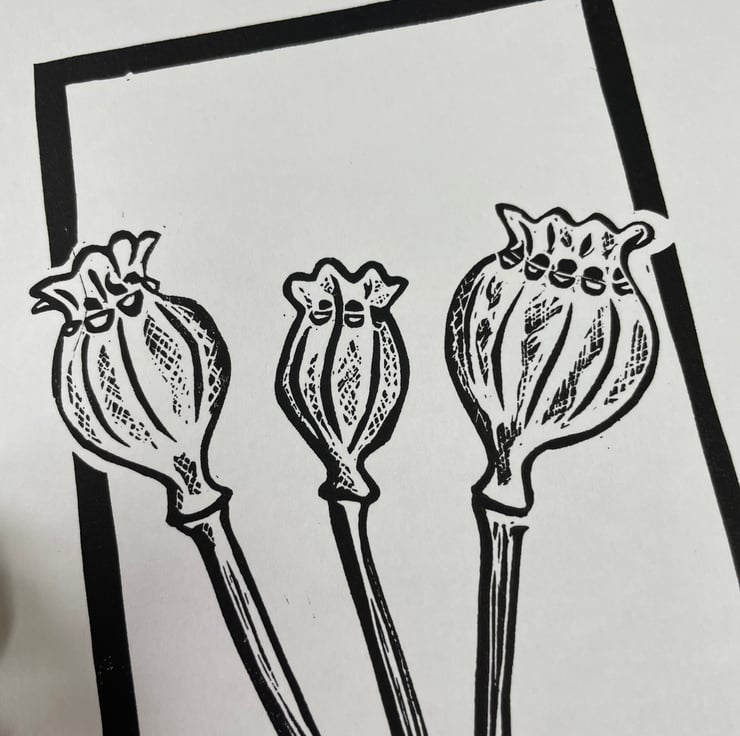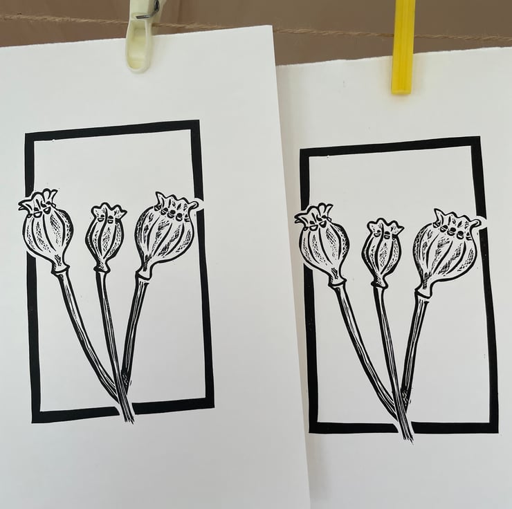 These print were inspired by drawings of the poppy seed heads I had in the garden and the variety of shapes they came in.