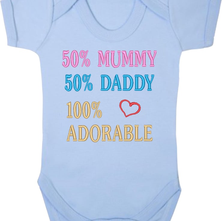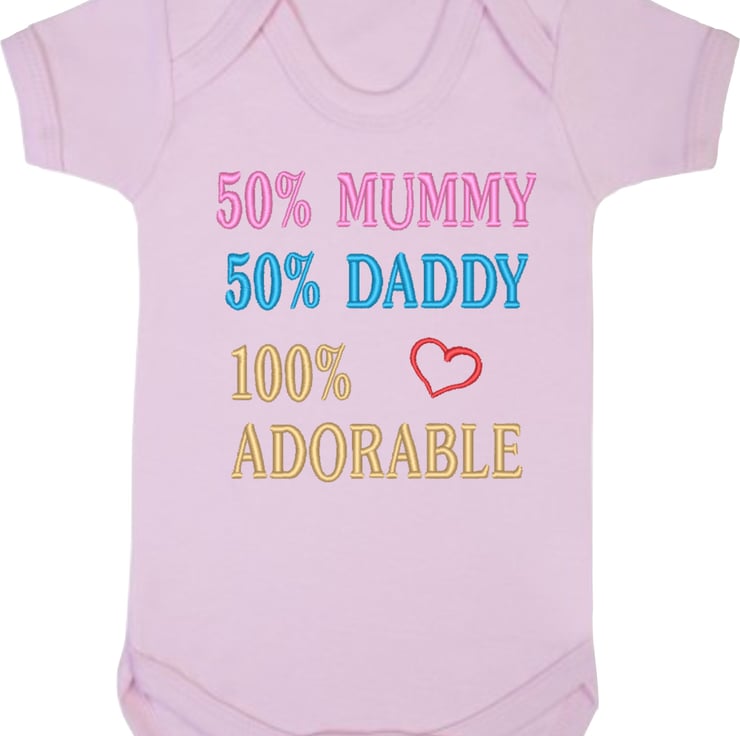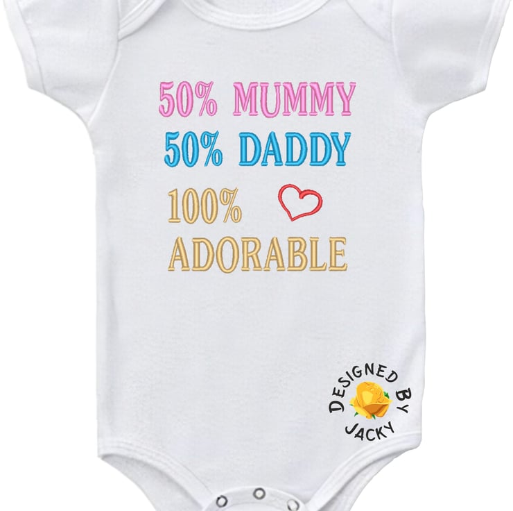50% Mummy 50% Daddy 100% Adorable - funny baby vest from designed by Jacky. This item is made to order.
