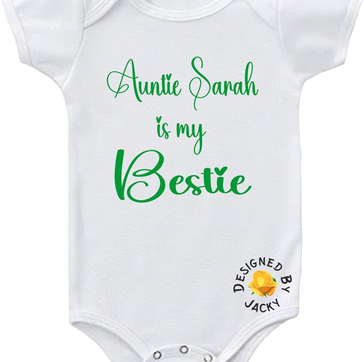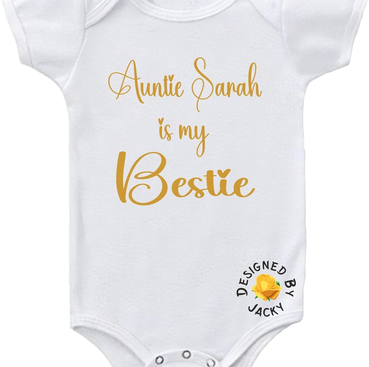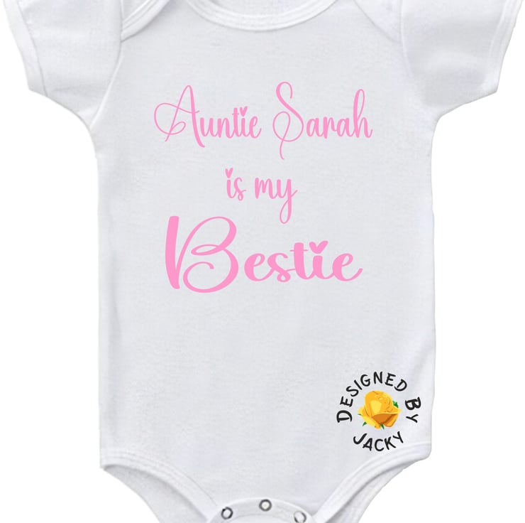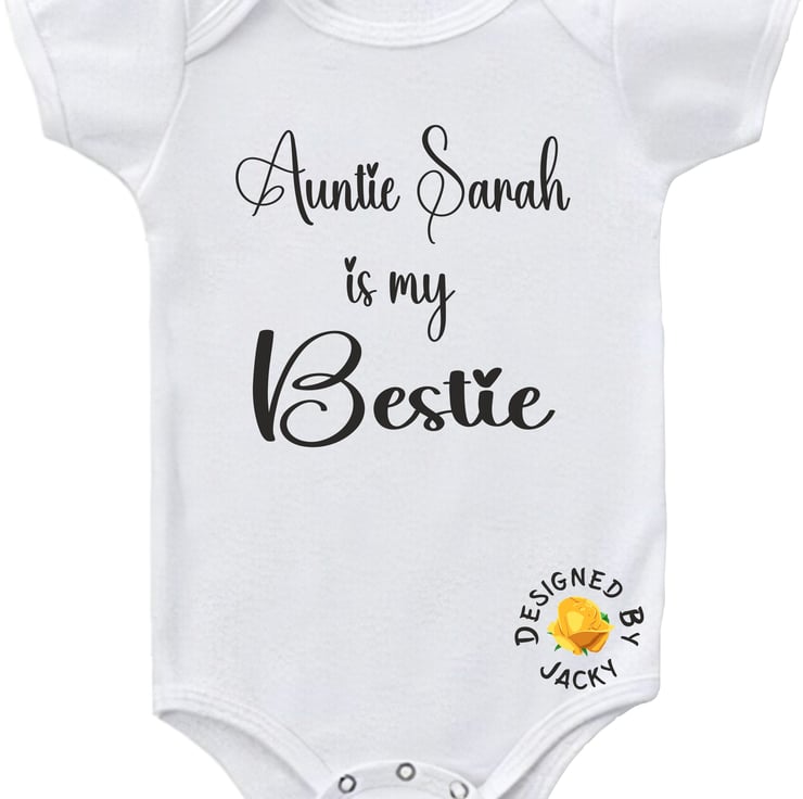 Auntie (name) Is My Bestie - funny baby vest from designed by Jacky. This item is made to order.