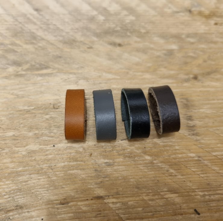This product is a set of two genuine leather belt loopskeepers, measuring 30mm in width. Available in brown, black, tan, or grey, these accessories are crafted in the United Kingdom. Designed specifically for leather belts, they are a high-quality and durable addition to any leathercraft project. Perfect for keeping your belts organized and securely fastened, these belt loops add a touch of luxury and sophistication to any outfit.