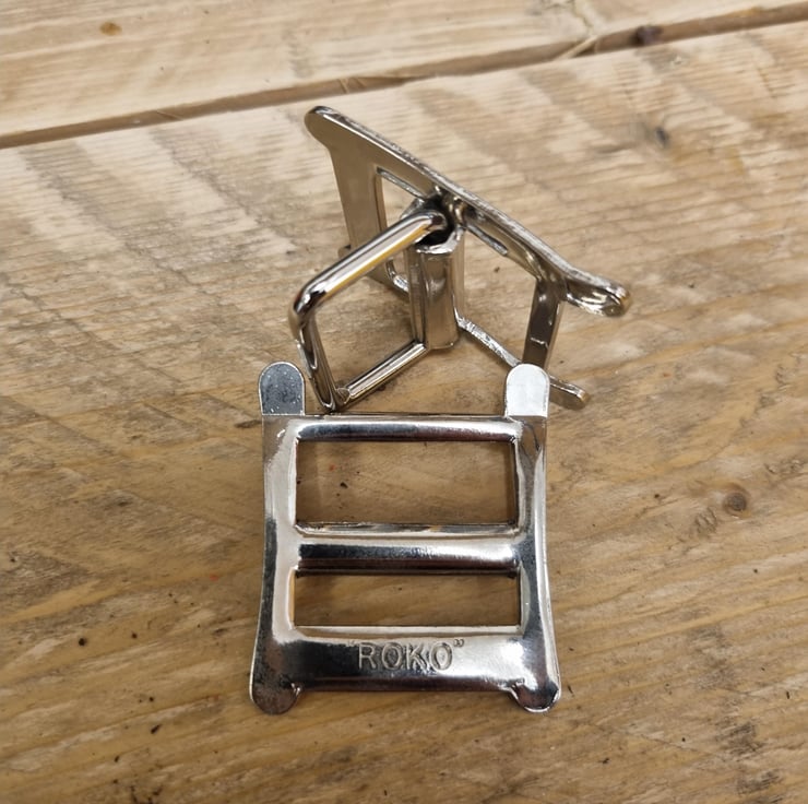 The 35mm Roko Buckle Nickel Plated Handbag Equestrian Horse Belt Buckle X4 is a stylish and practical accessory for horse lovers. The silver colour adds a touch of elegance to any outfit, while the sturdy nickel plating ensures durability. The buckle design is both functional and fashionable, making it a versatile piece for any equestrian enthusiast's collection. Made by the trusted brand Roko, this buckle is sure to add a touch of sophistication to any horse-related craft or jewellery project.